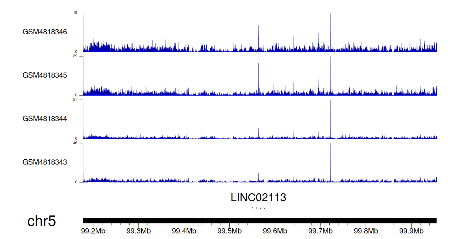 > Dataset: GSE131257 - LINC02113 peak across samples