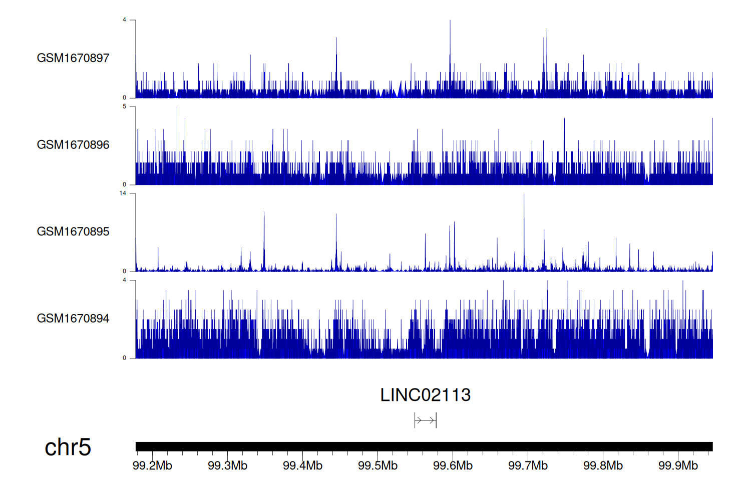 > Dataset: GSE100400 - LINC02113 peak across samples