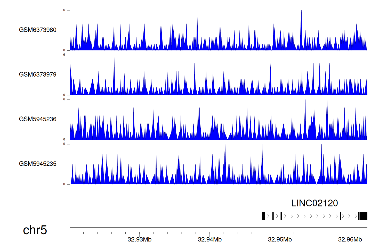 > Dataset: GSE225248 - LINC02120 peak across samples
