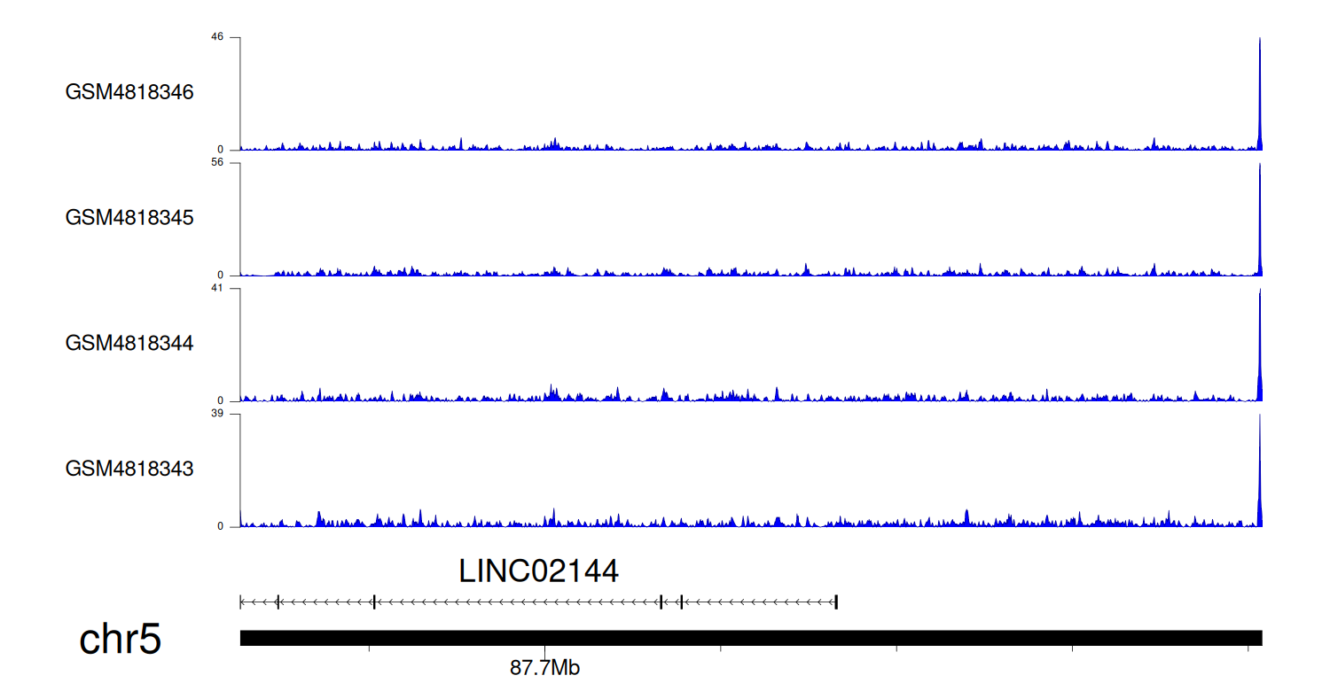> Dataset: GSE131257 - LINC02144 peak across samples