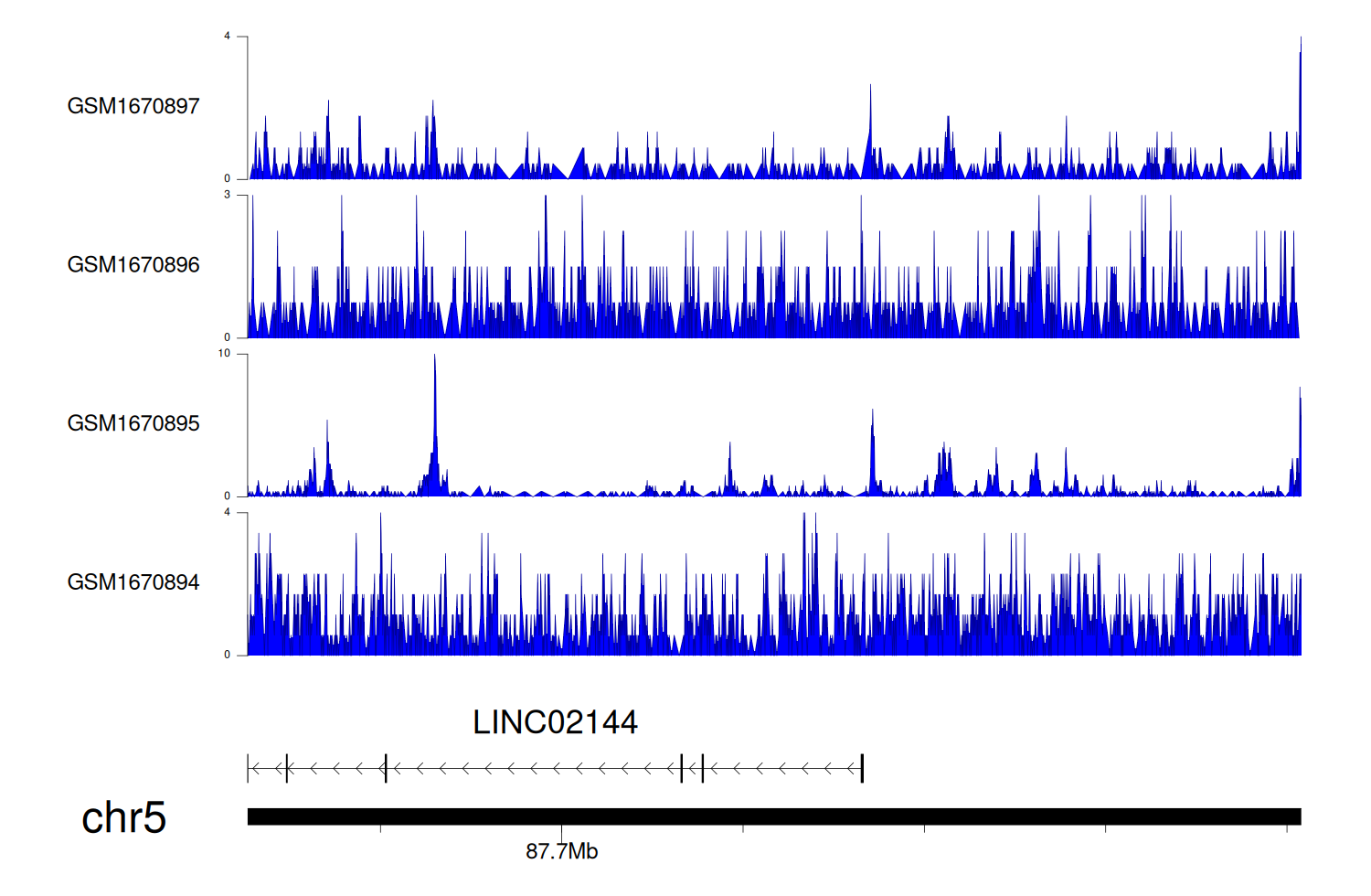 > Dataset: GSE68402 - LINC02144 peak across samples