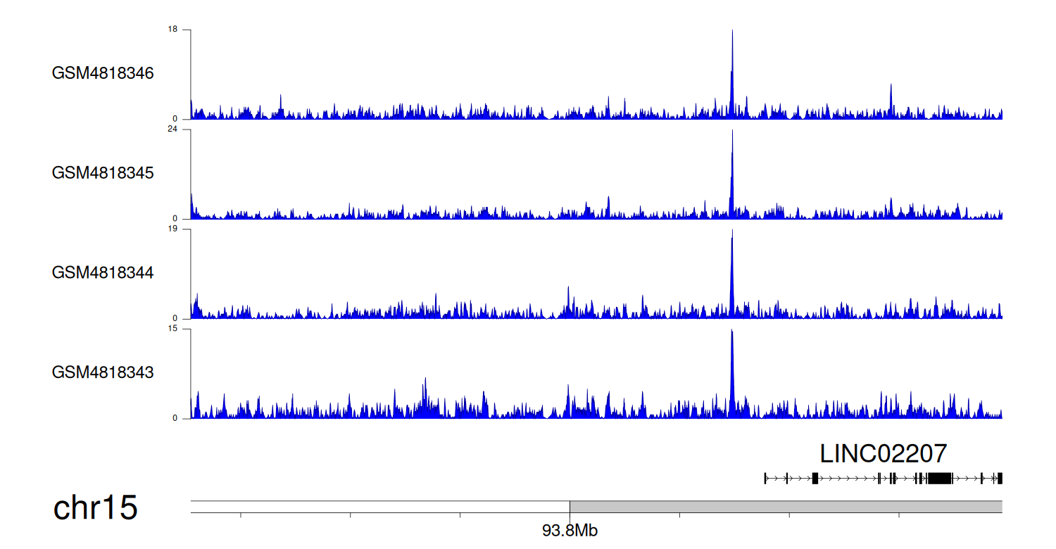 > Dataset: GSE131257 - LINC02207 peak across samples