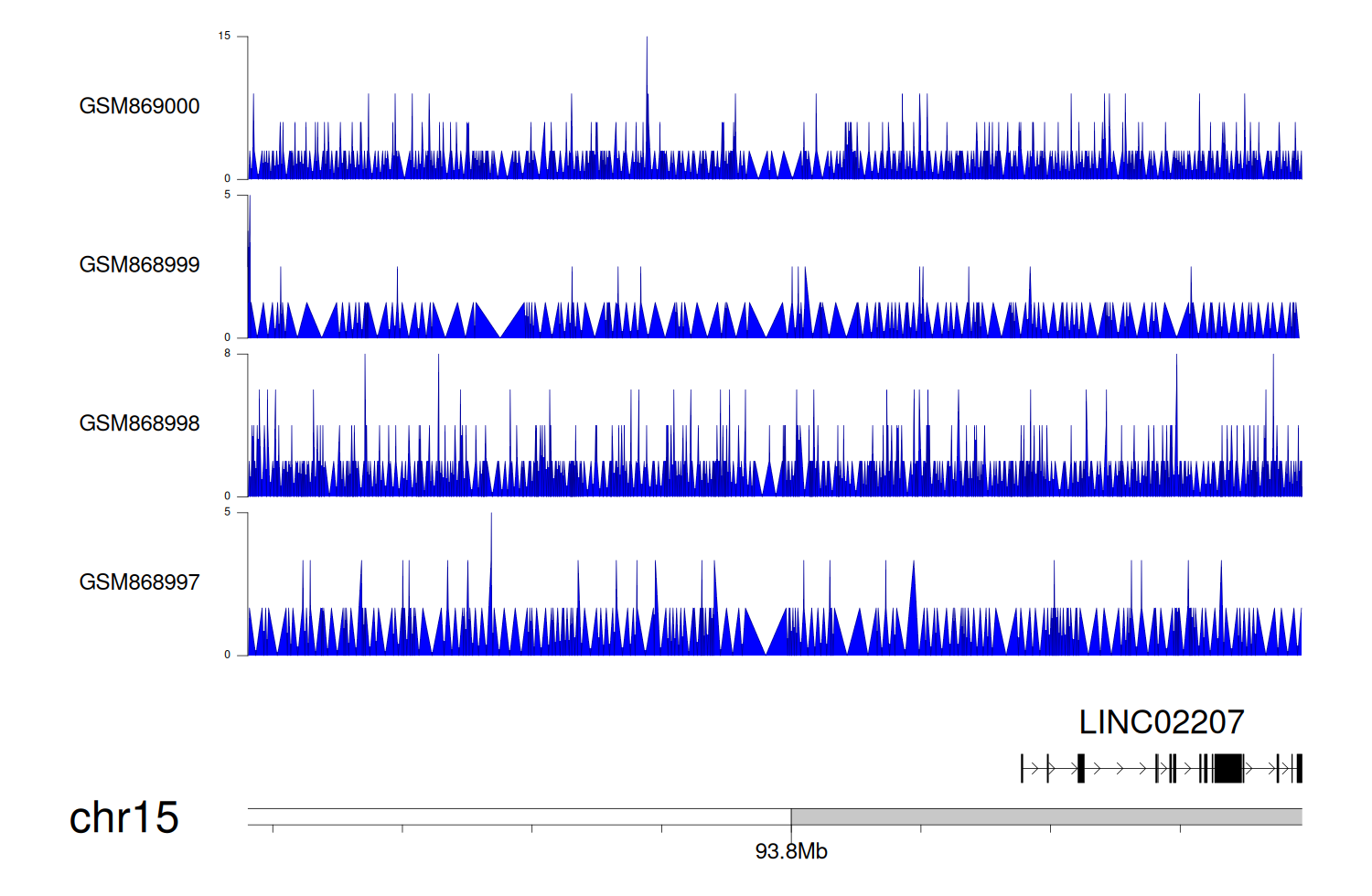 > Dataset: GSE68402 - LINC02207 peak across samples