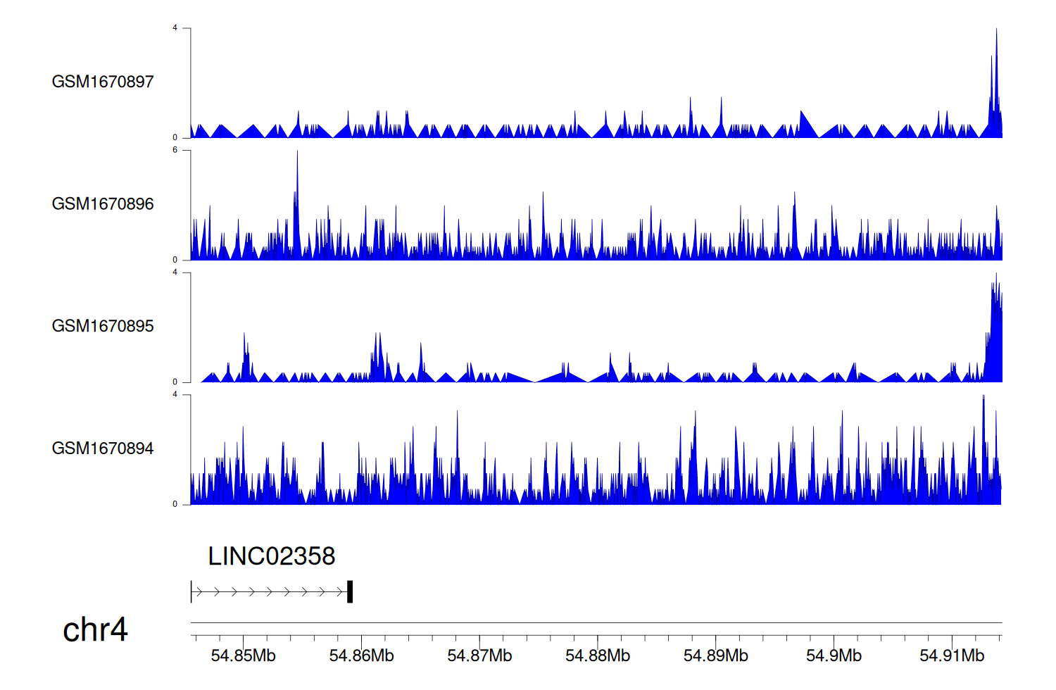 > Dataset: GSE68402 - LINC02358 peak across samples