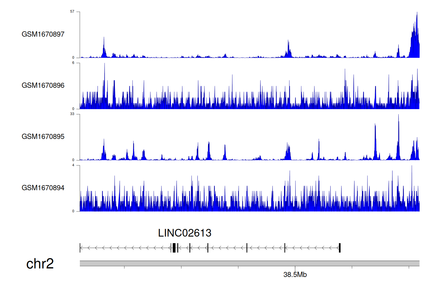 > Dataset: GSE68402 - LINC02613 peak across samples