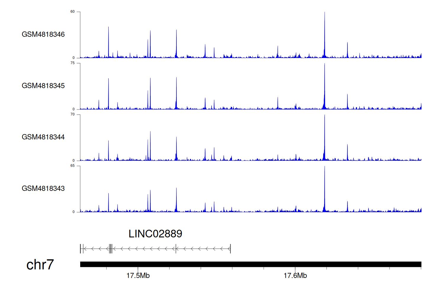 > Dataset: GSE270130 - LINC02889 peak across samples