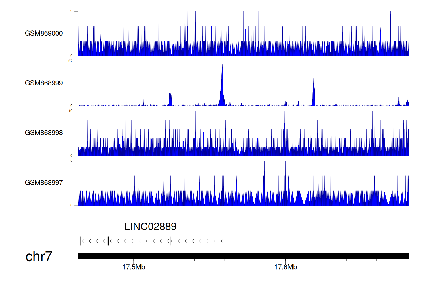 > Dataset: GSE68402 - LINC02889 peak across samples