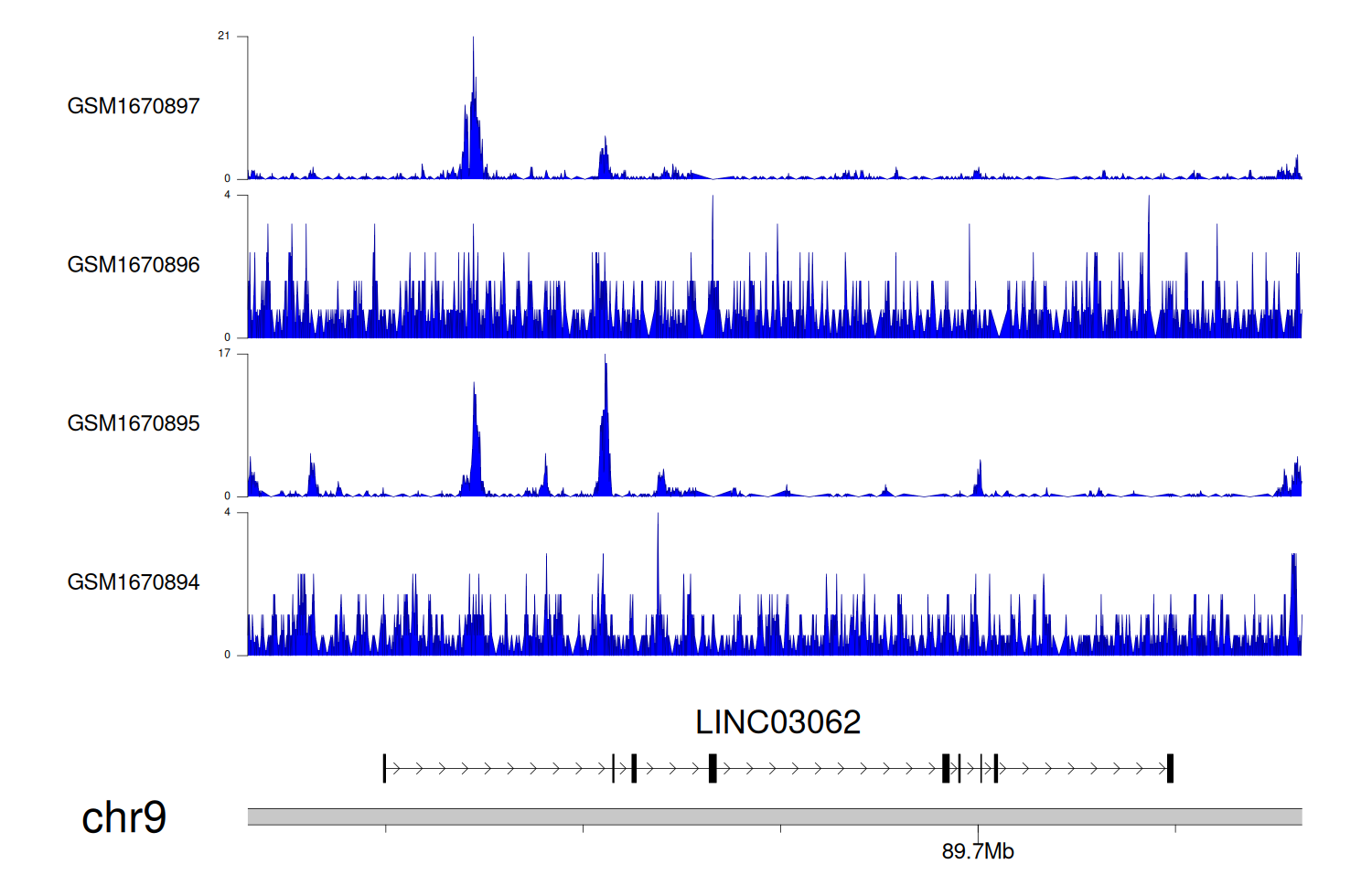 > Dataset: GSE68402 - LINC03062 peak across samples