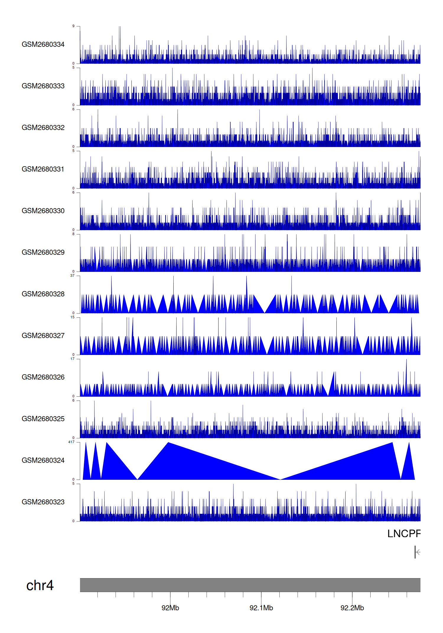 > Dataset: GSE100400 - LNCPRESS2 peak across samples
