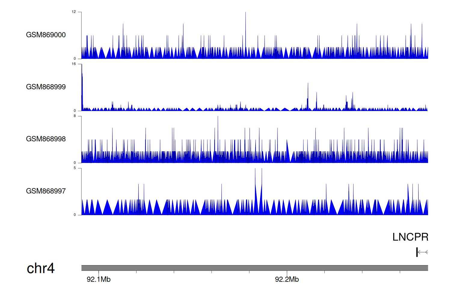 > Dataset: GSE68402 - LNCPRESS2 peak across samples