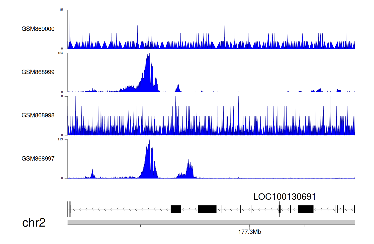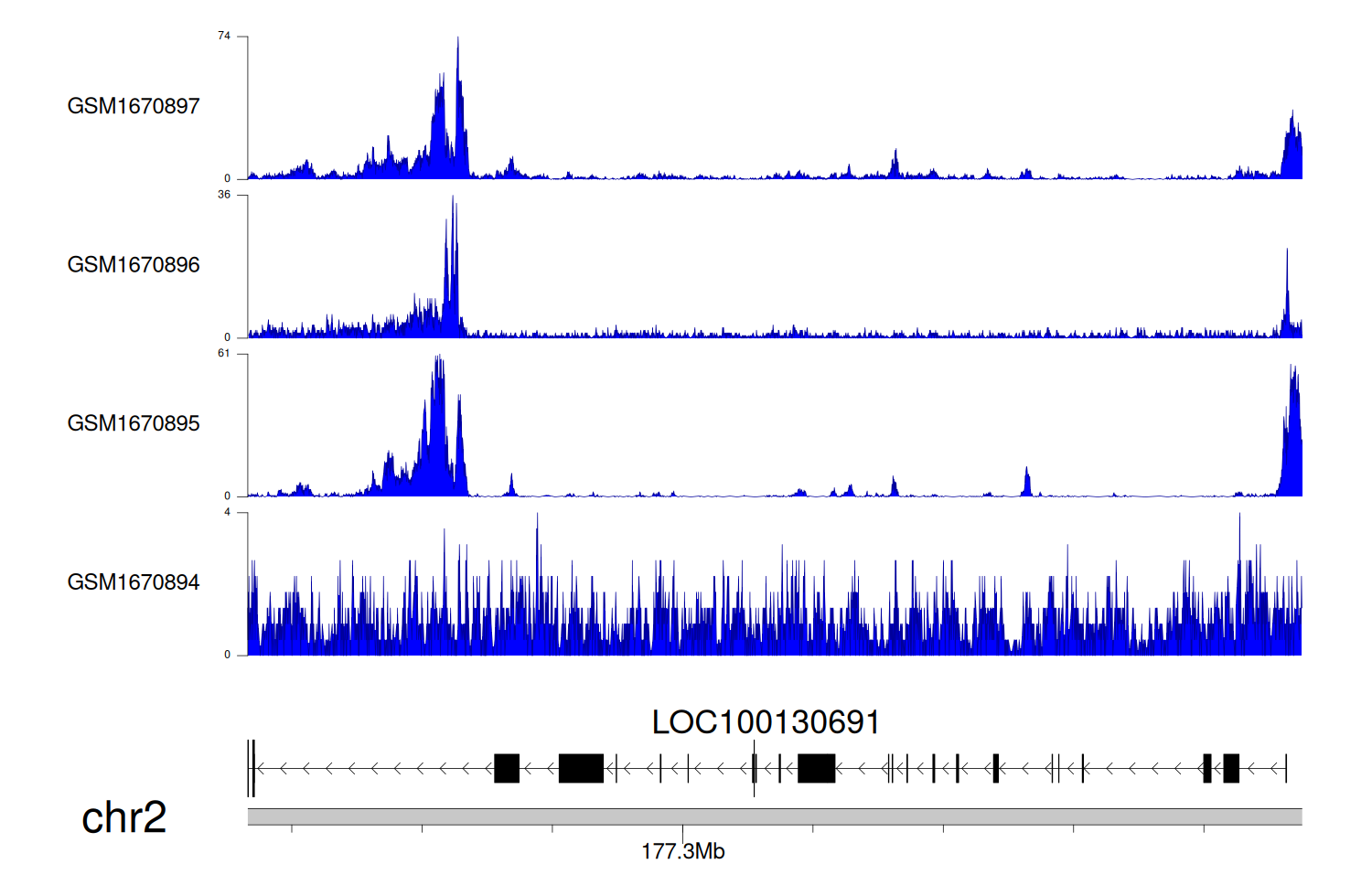 > Dataset: GSE68402 - LOC100130691 peak across samples