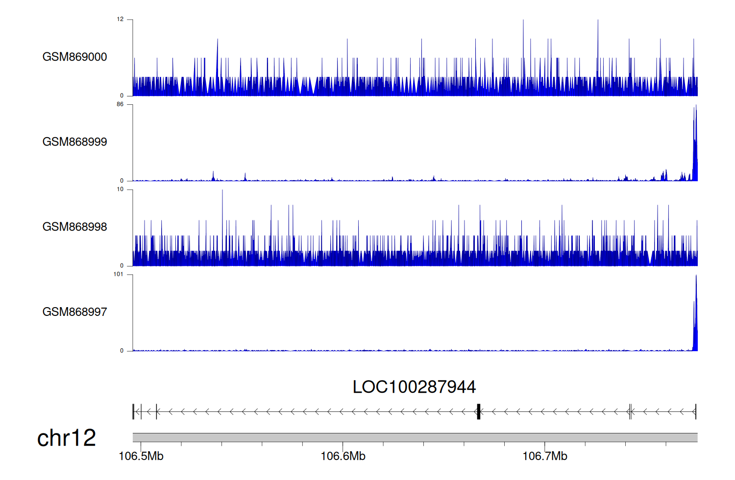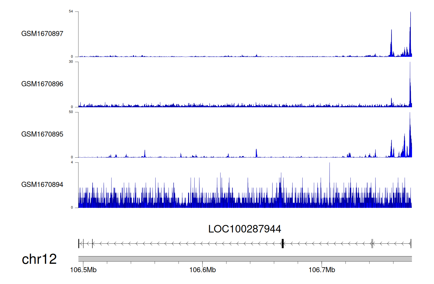 > Dataset: GSE68402 - LOC100287944 peak across samples