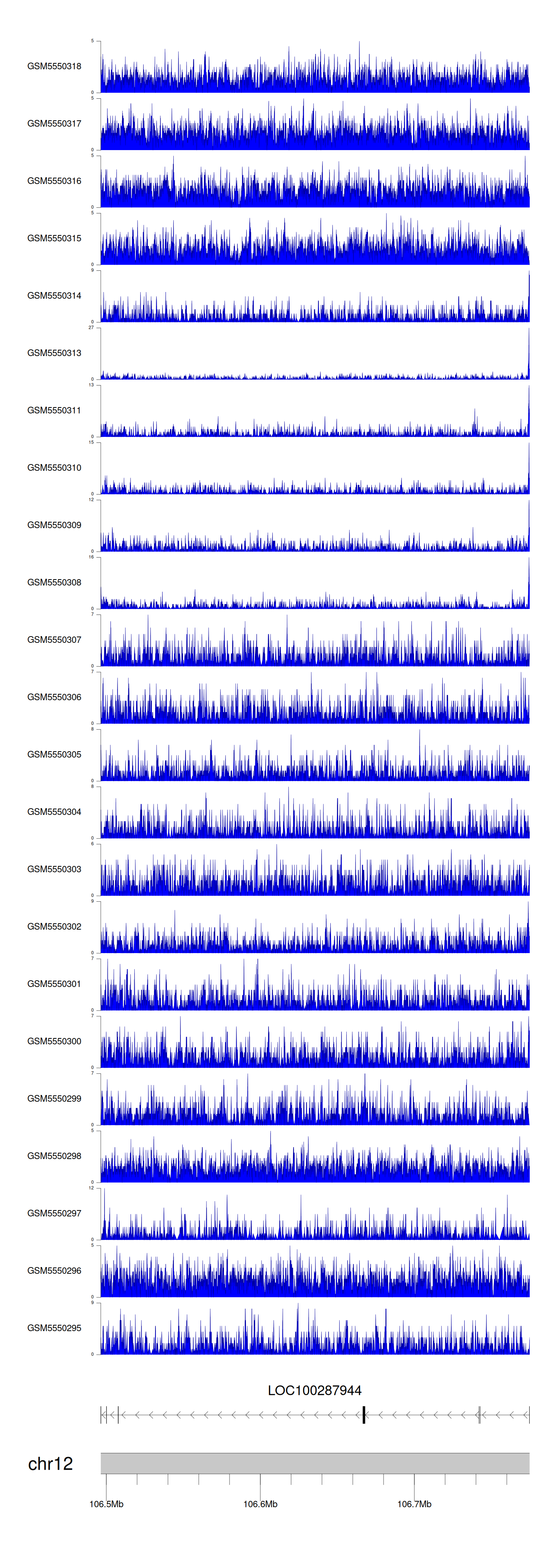 > Dataset: GSE143026 - LOC100287944 peak across samples