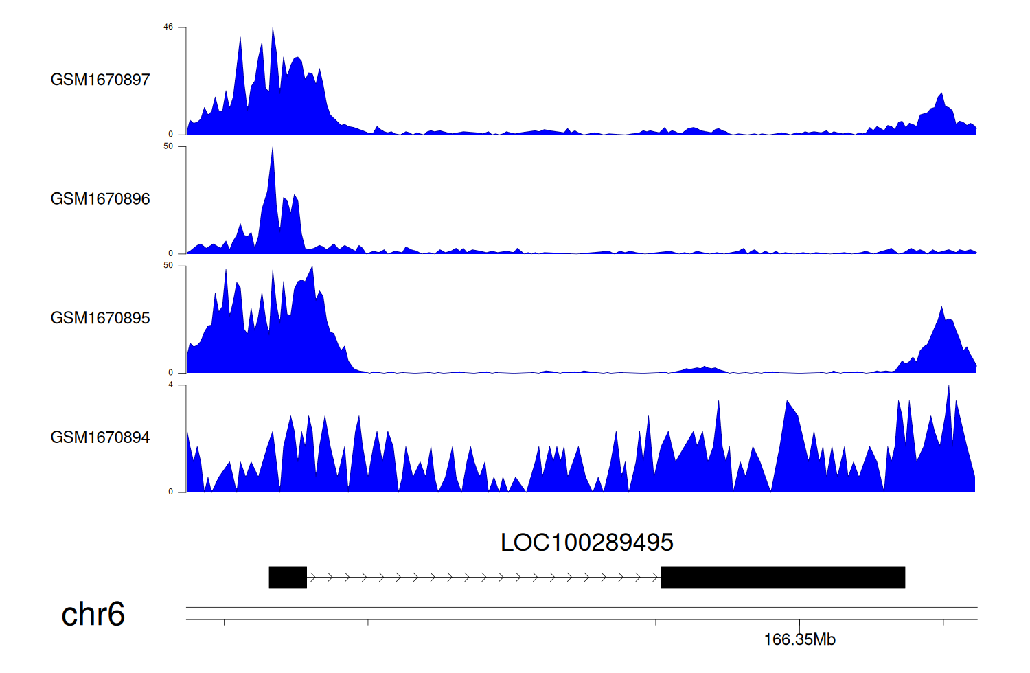 > Dataset: GSE68402 - LOC100289495 peak across samples