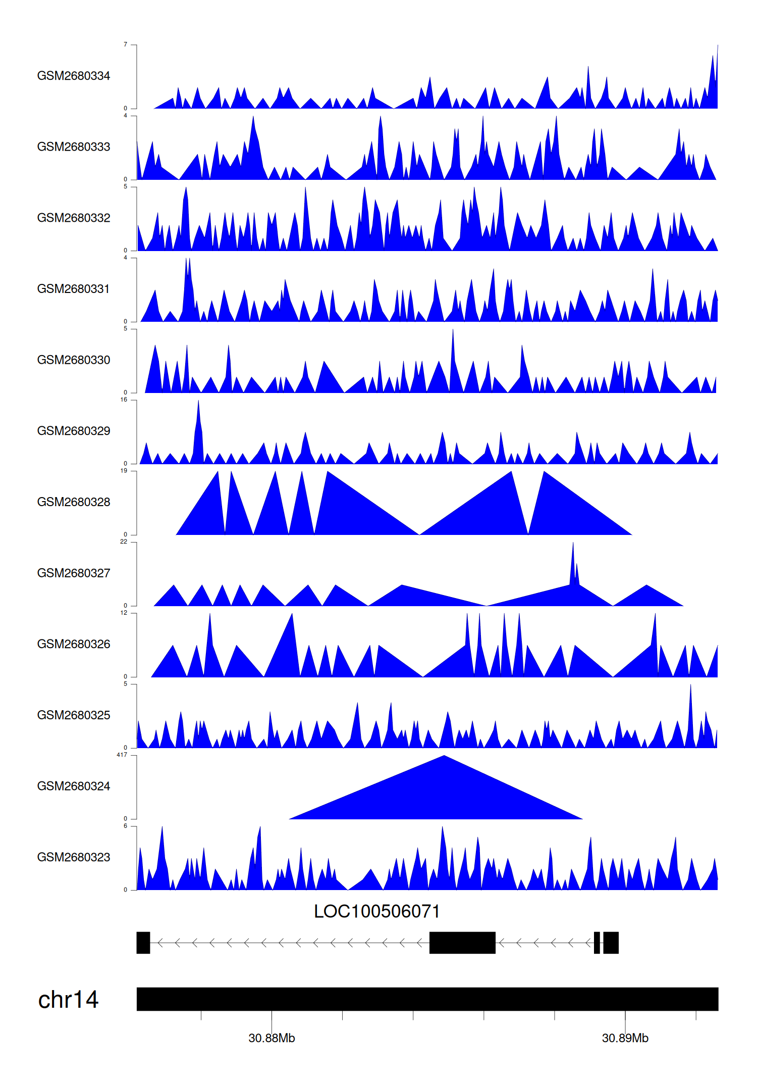 > Dataset: GSE100400 - LOC100506071 peak across samples