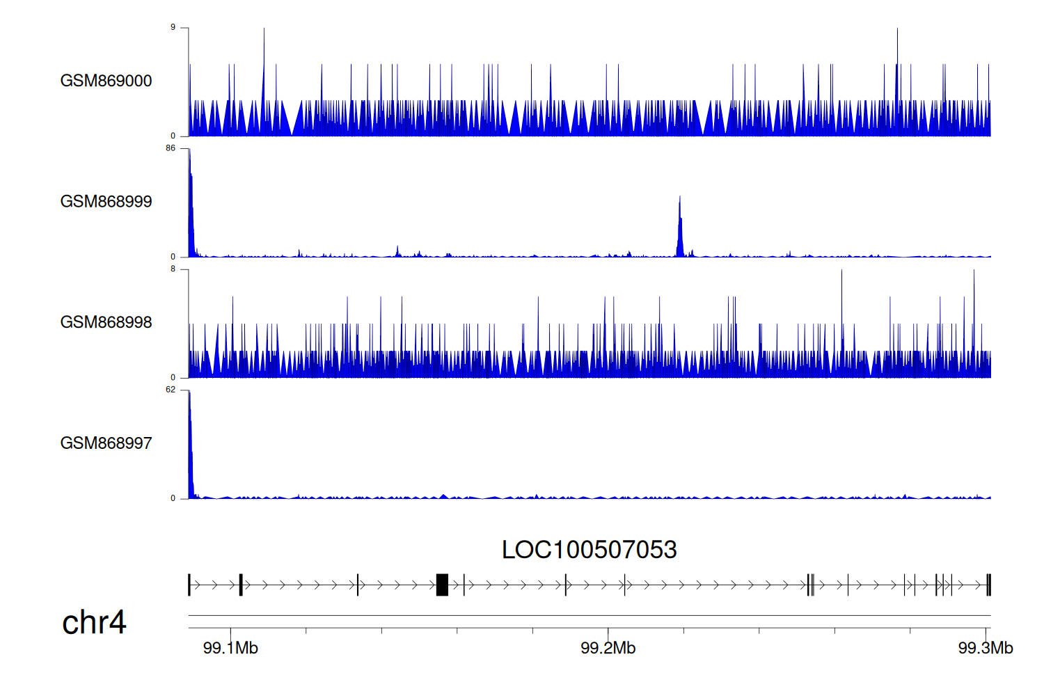 > Dataset: GSE131257 - LOC100507053 peak across samples