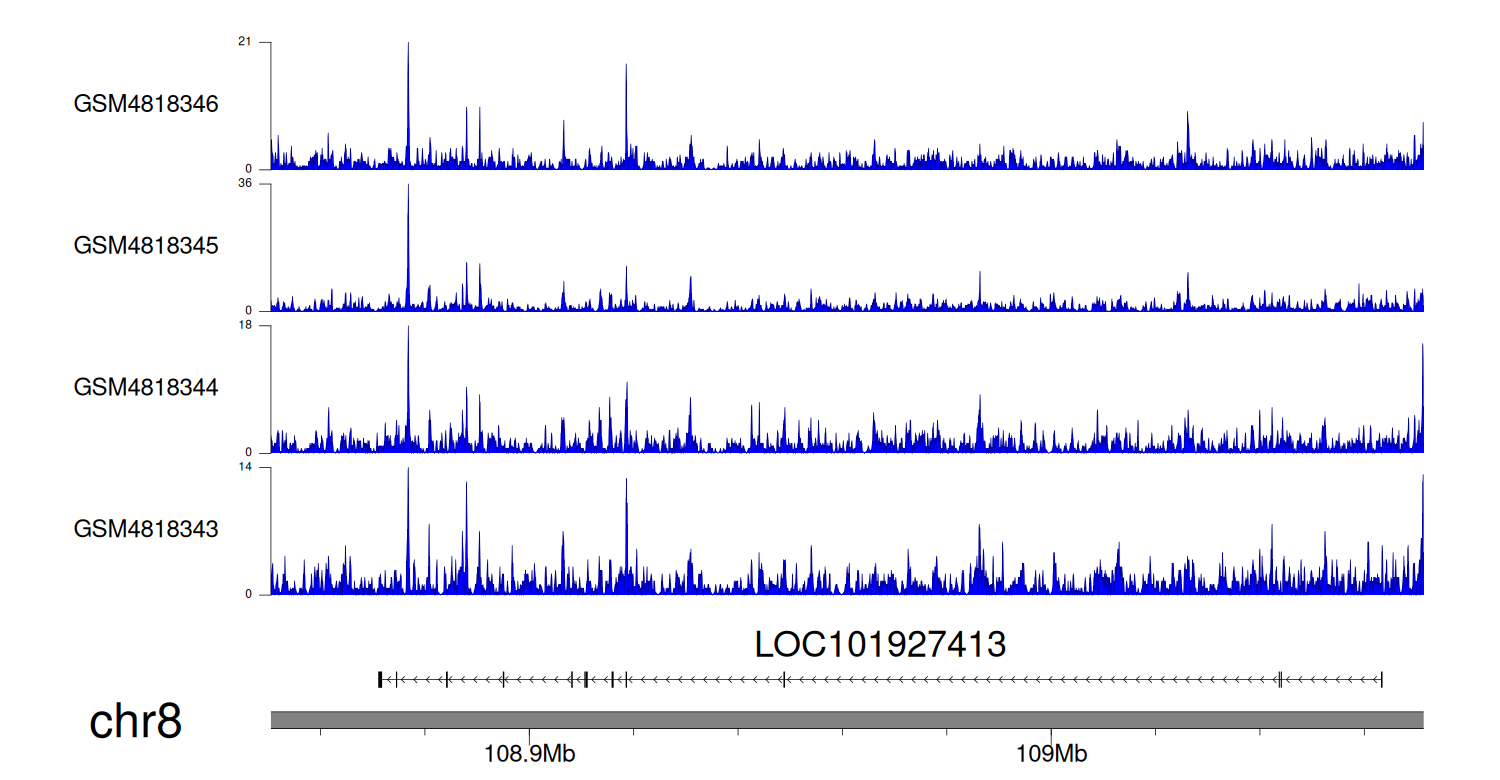 > Dataset: GSE131257 - LOC101927413 peak across samples