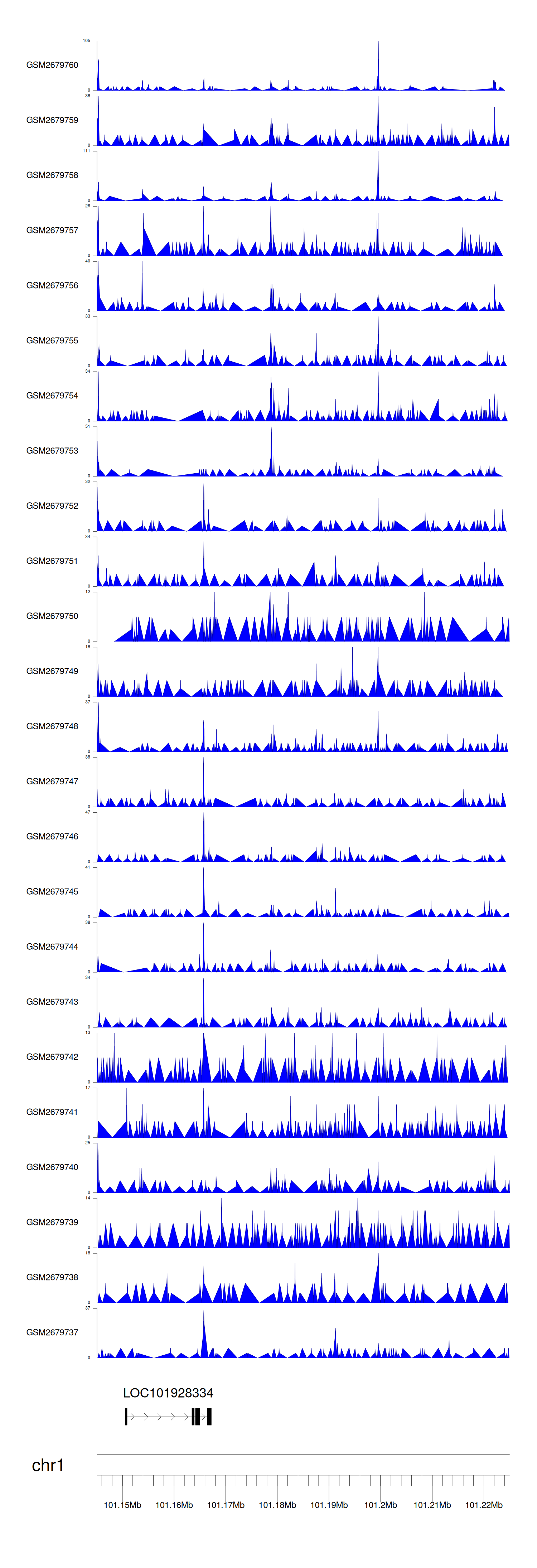 > Dataset: GSE100376 - LOC101928334 peak across samples