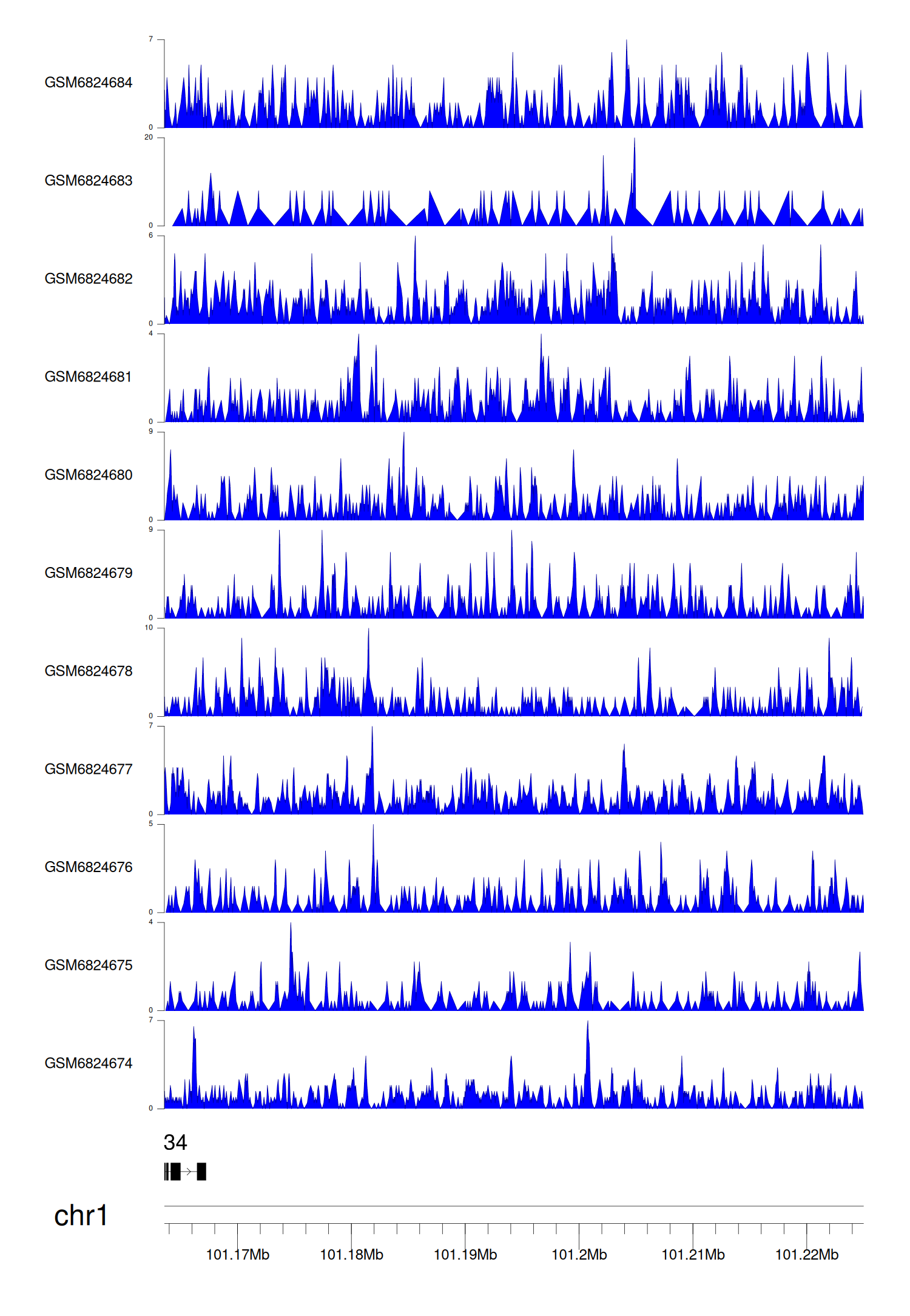> Dataset: GSE220859 - LOC101928334 peak across samples