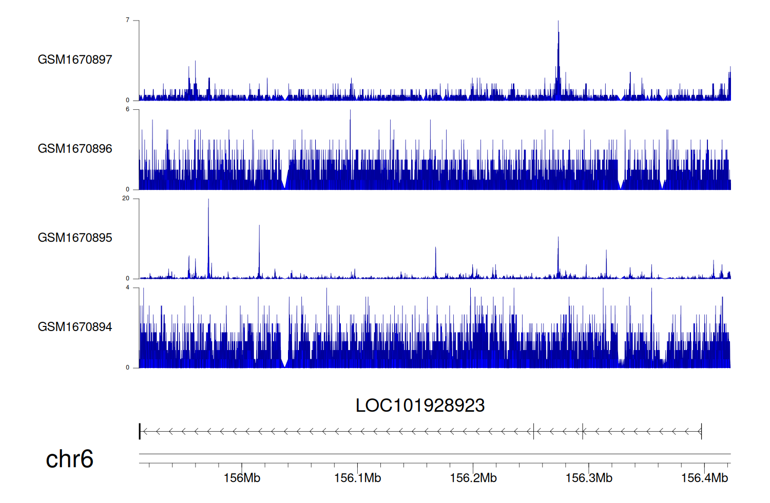 > Dataset: GSE100400 - LOC101928923 peak across samples