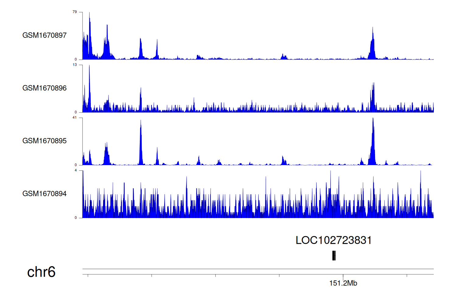 > Dataset: GSE68402 - LOC102723831 peak across samples