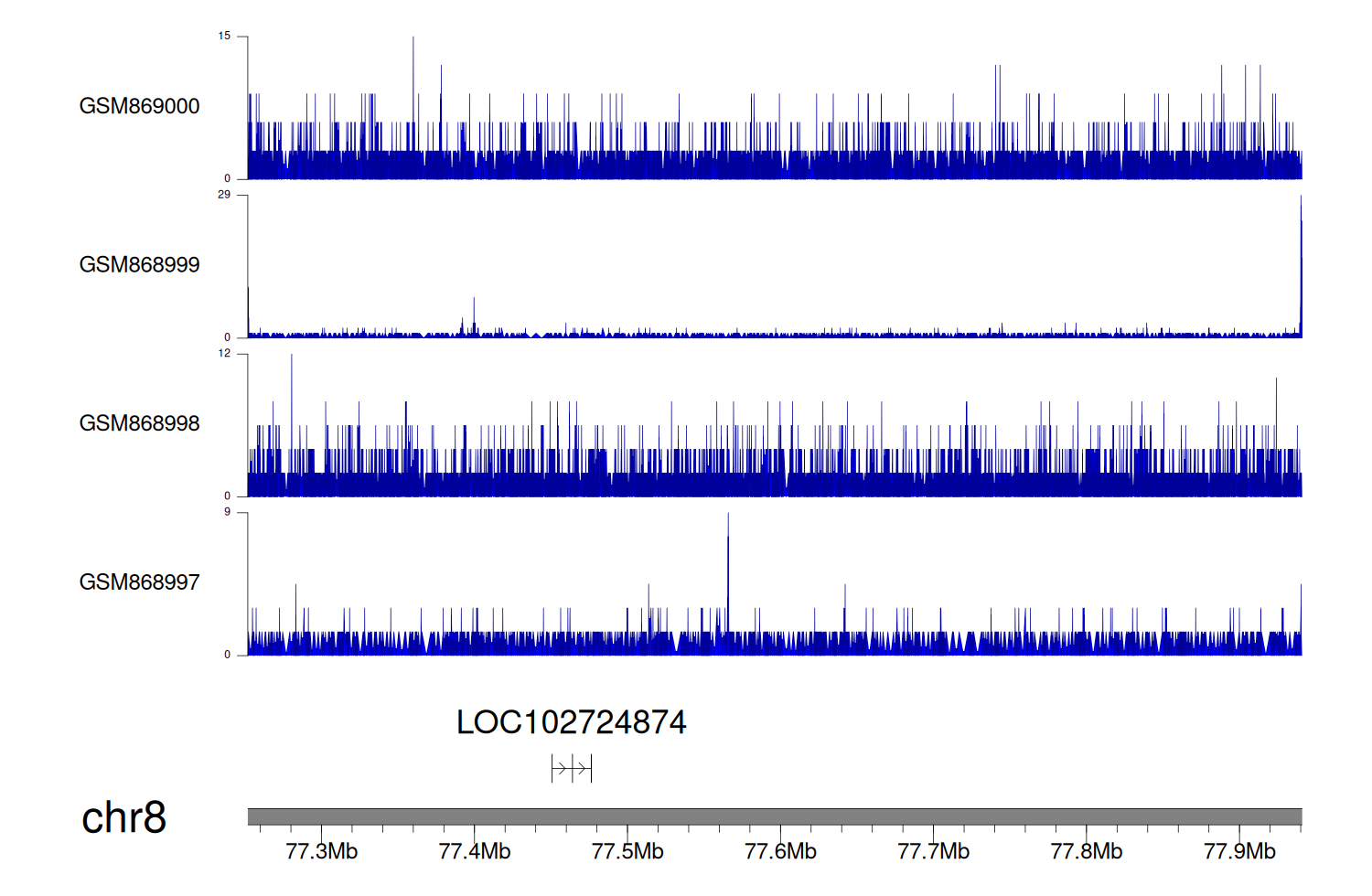 > Dataset: GSE131257 - LOC102724874 peak across samples