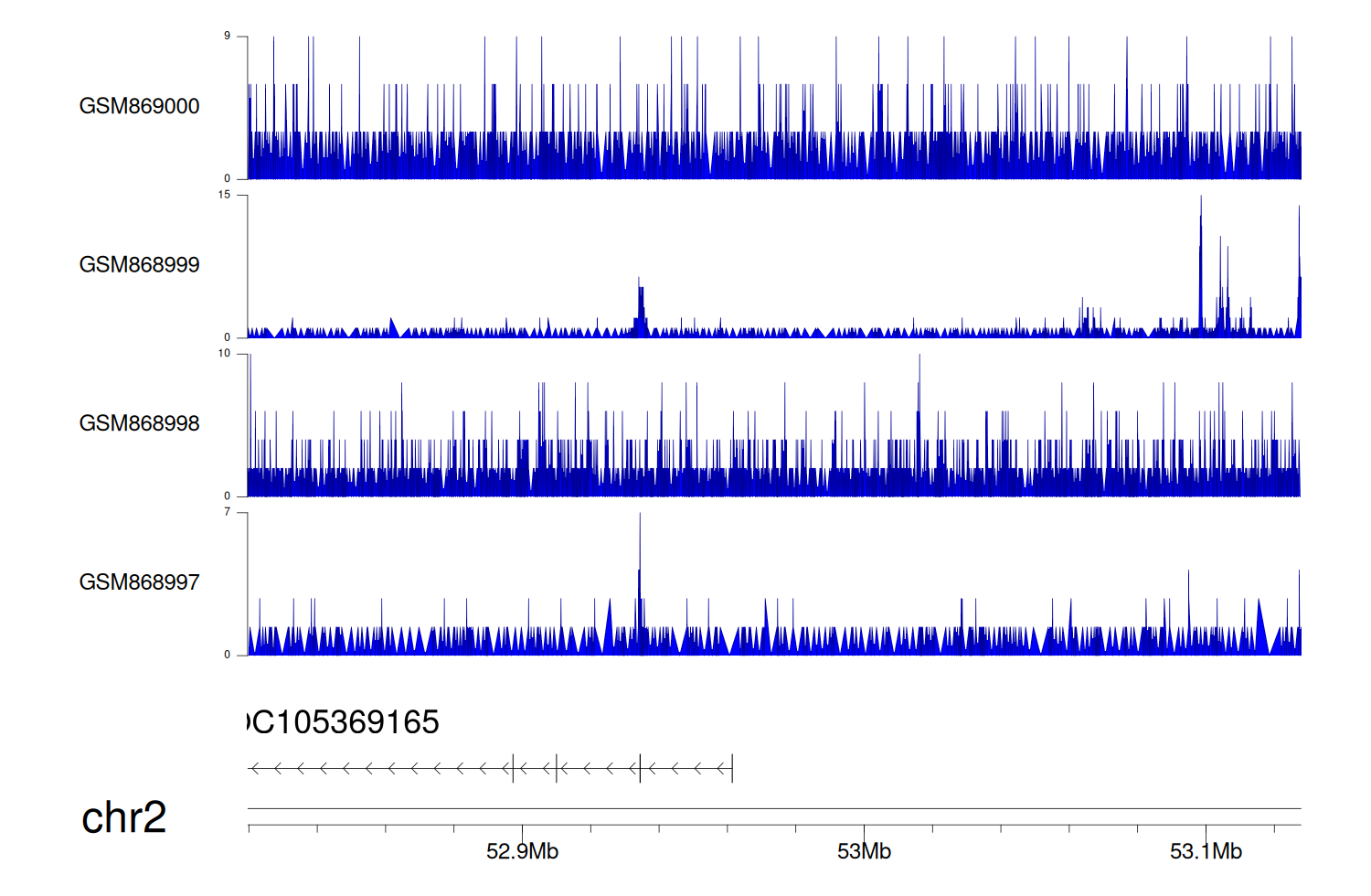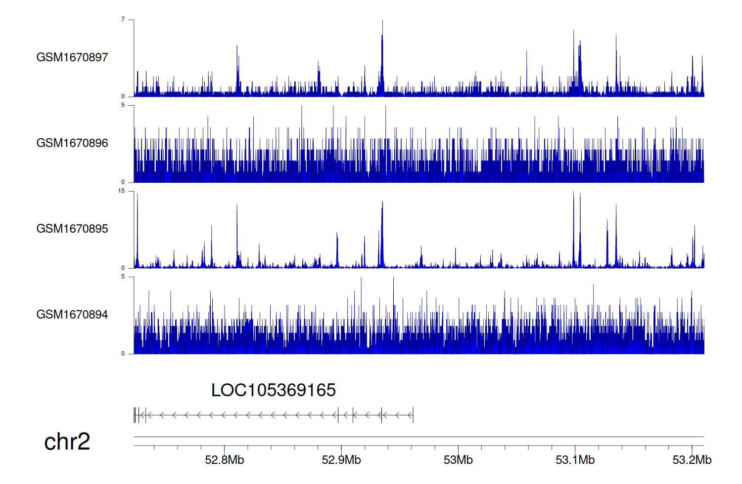 > Dataset: GSE131257 - LOC105369165 peak across samples