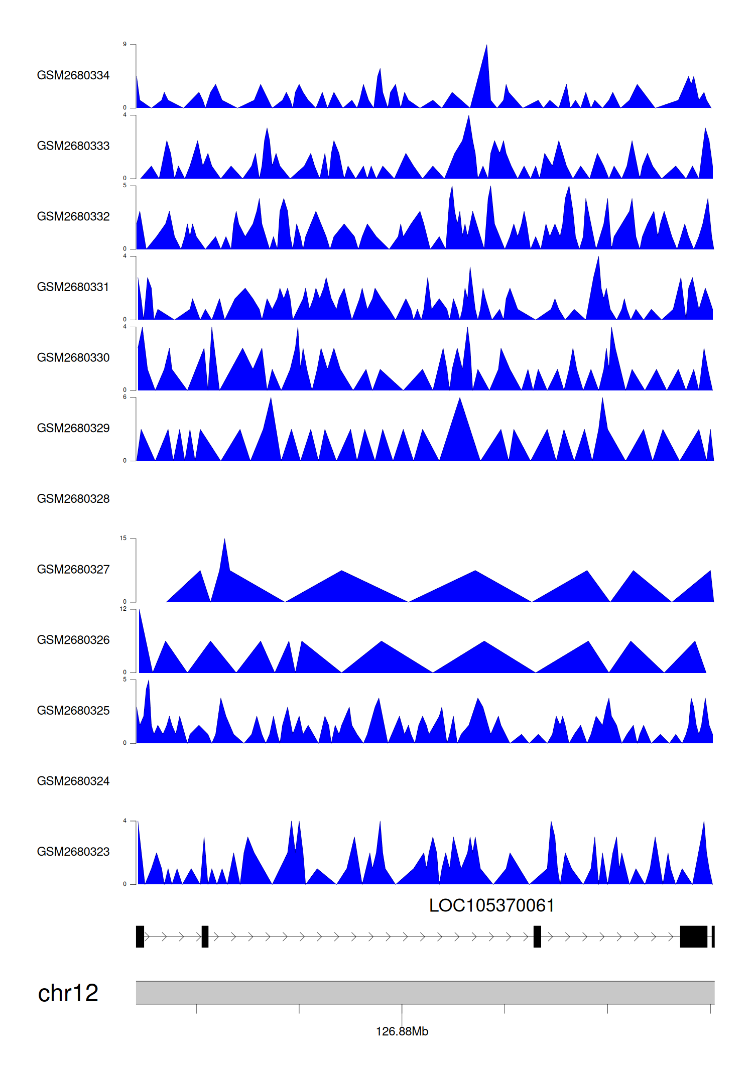 > Dataset: GSE131257 - LOC105370061 peak across samples