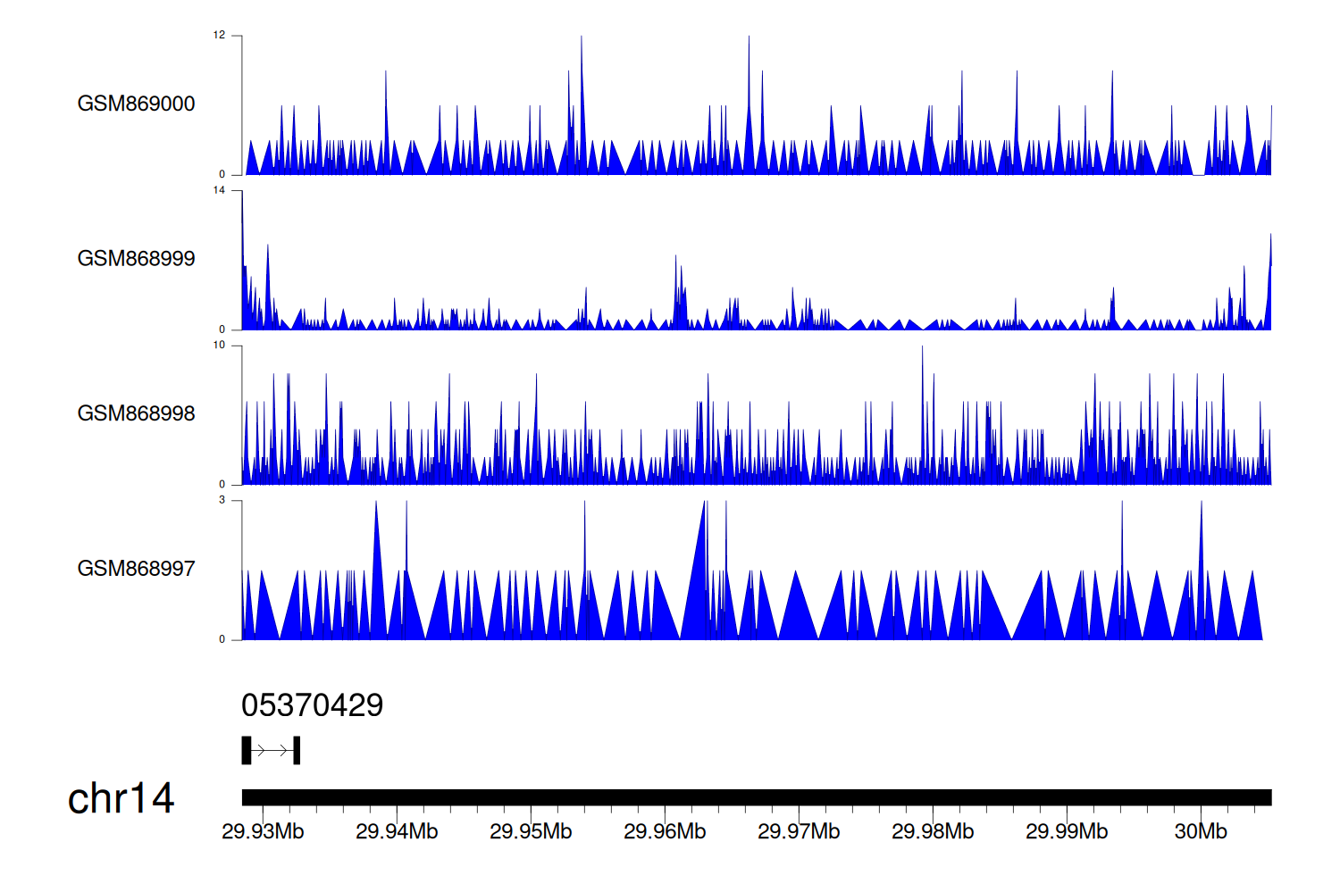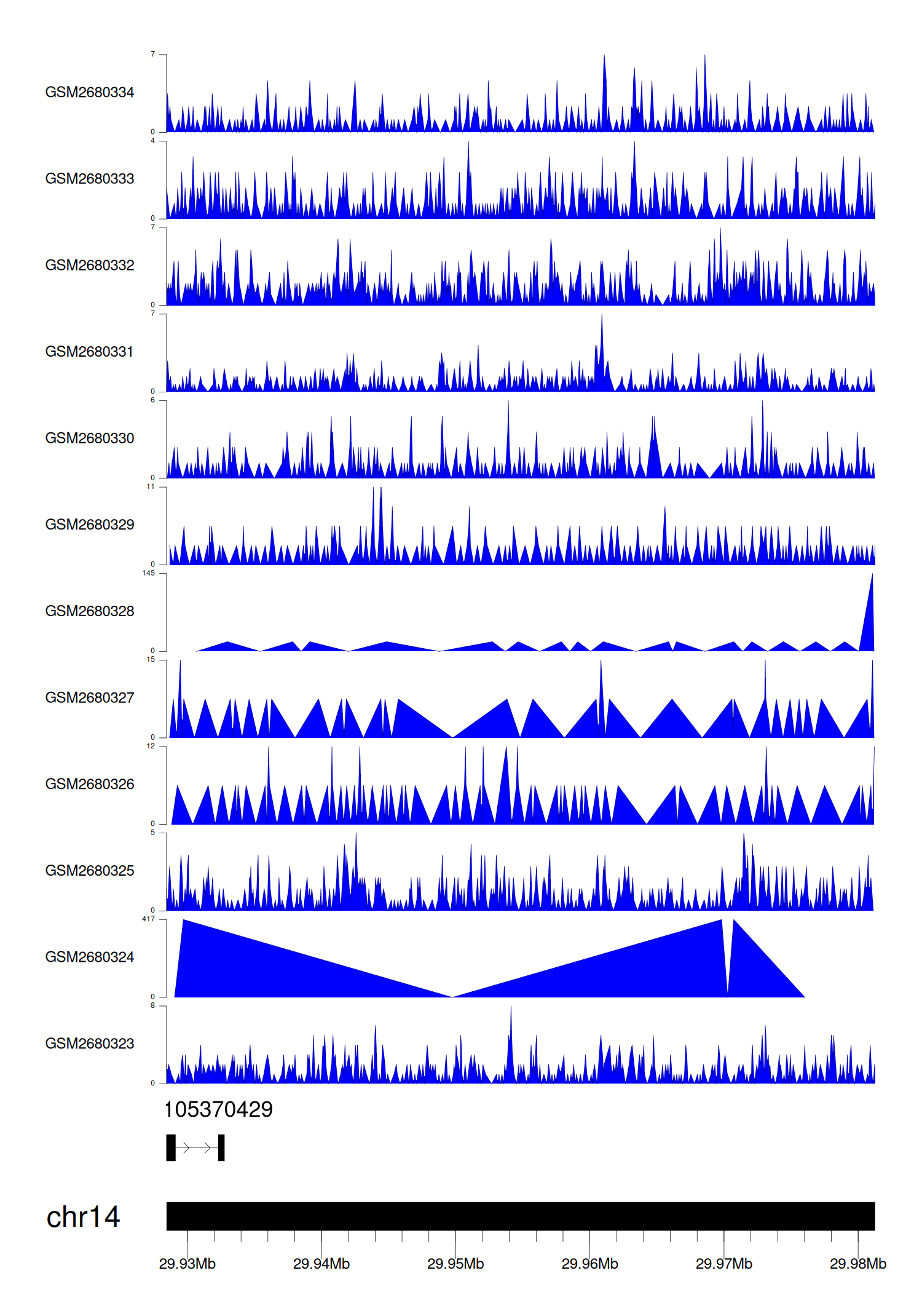 > Dataset: GSE68402 - LOC105370429 peak across samples