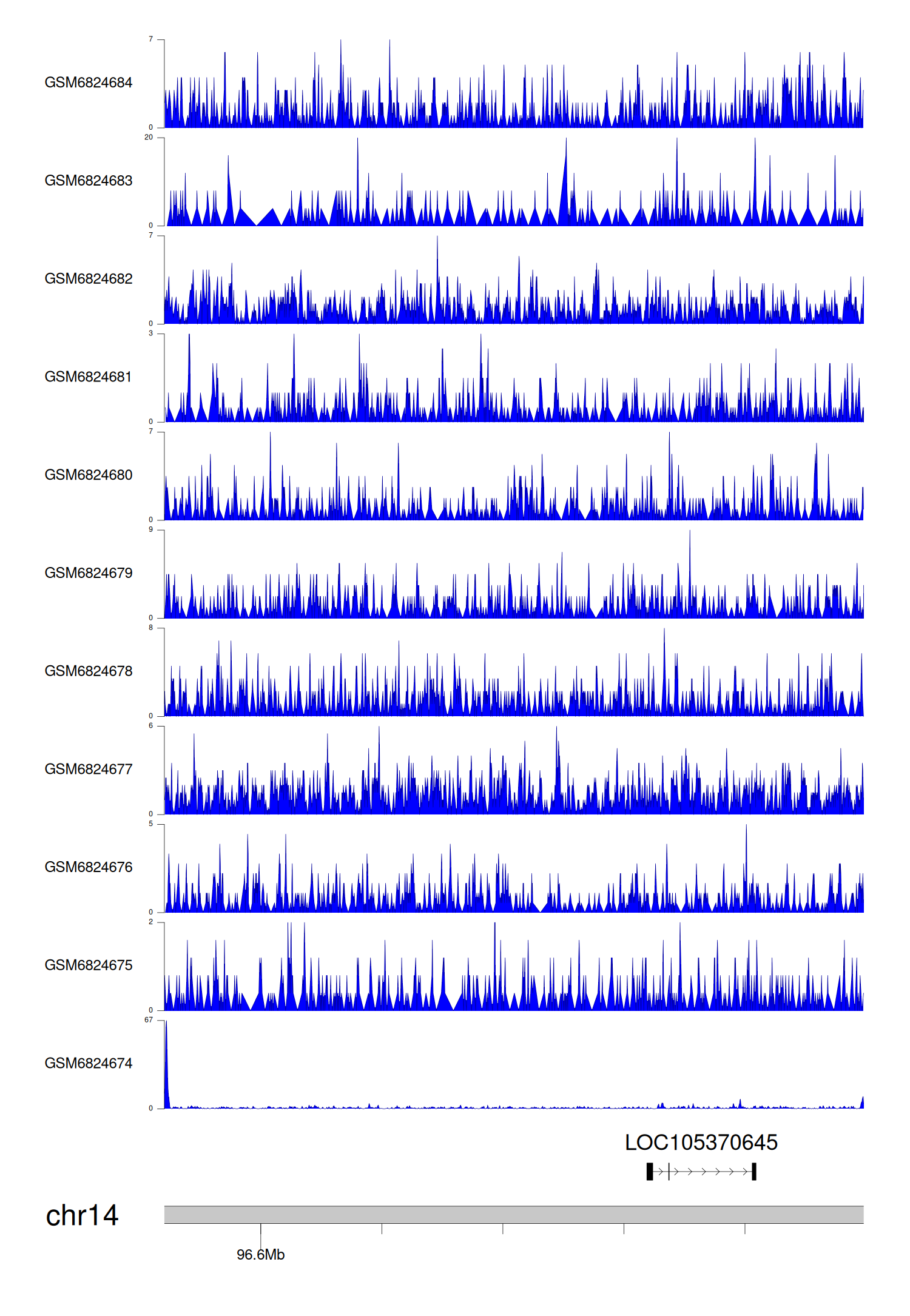 > Dataset: GSE144329 - LOC105370645 peak across samples