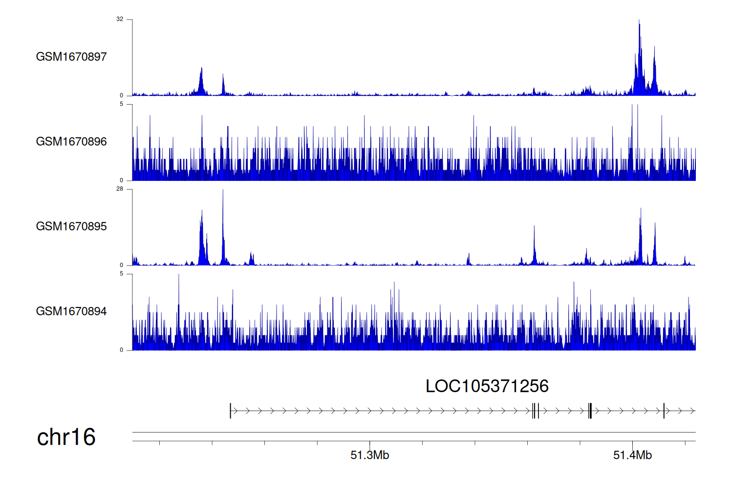 > Dataset: GSE270130 - LOC105371256 peak across samples