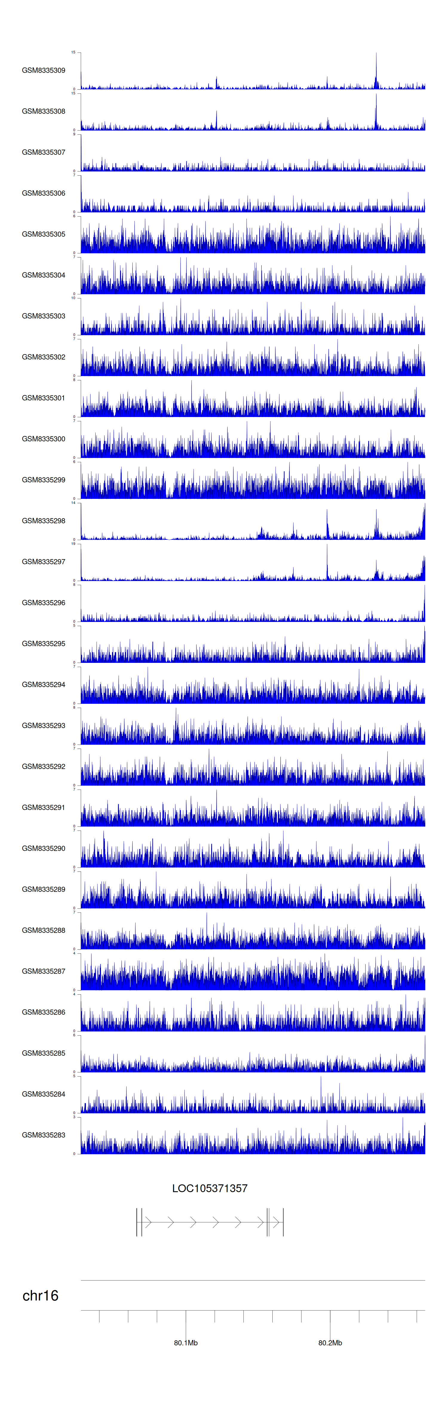 > Dataset: GSE270130 - LOC105371357 peak across samples