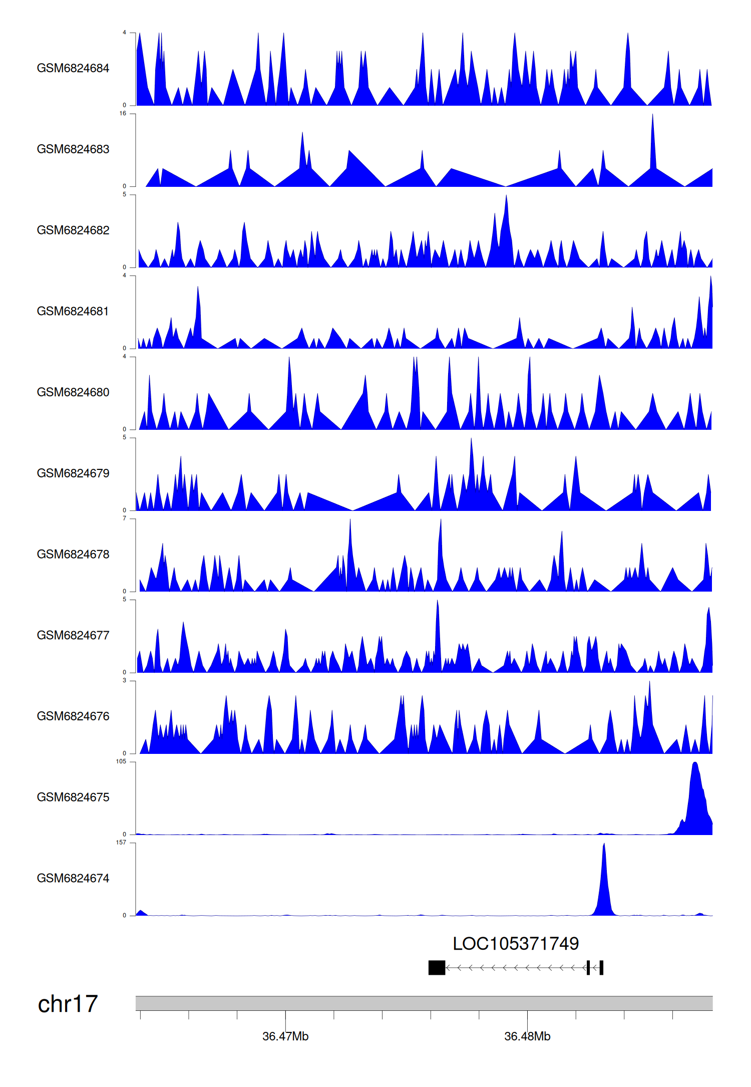 > Dataset: GSE165705 - LOC105371749 peak across samples