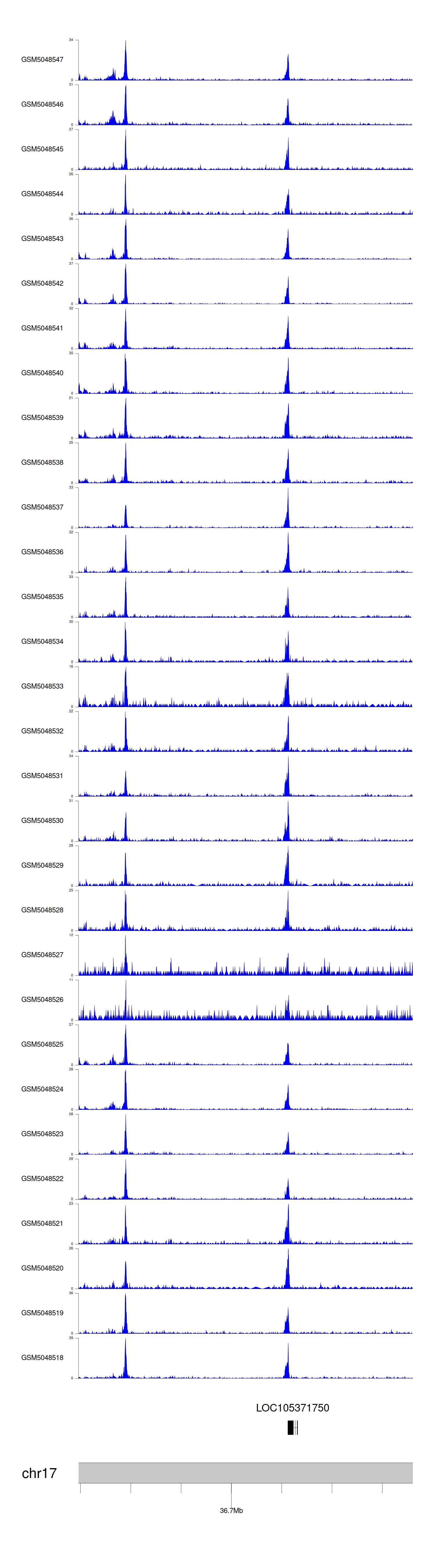 > Dataset: GSE100376 - LOC105371750 peak across samples