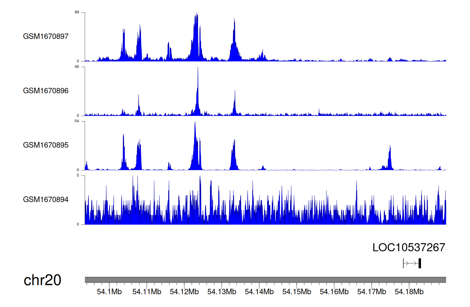> Dataset: GSE131257 - LOC105372675 peak across samples