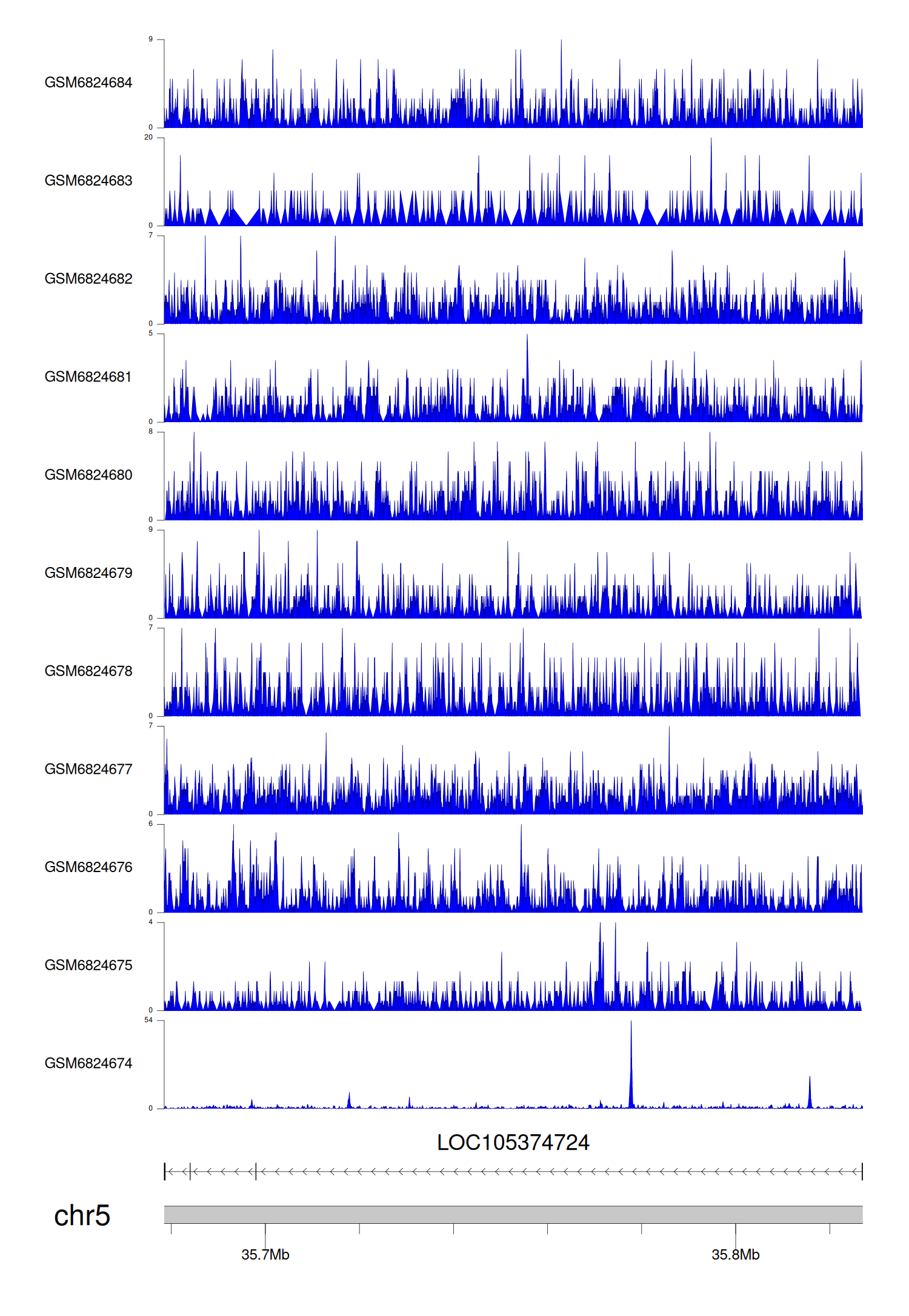 > Dataset: GSE144329 - LOC105374724 peak across samples