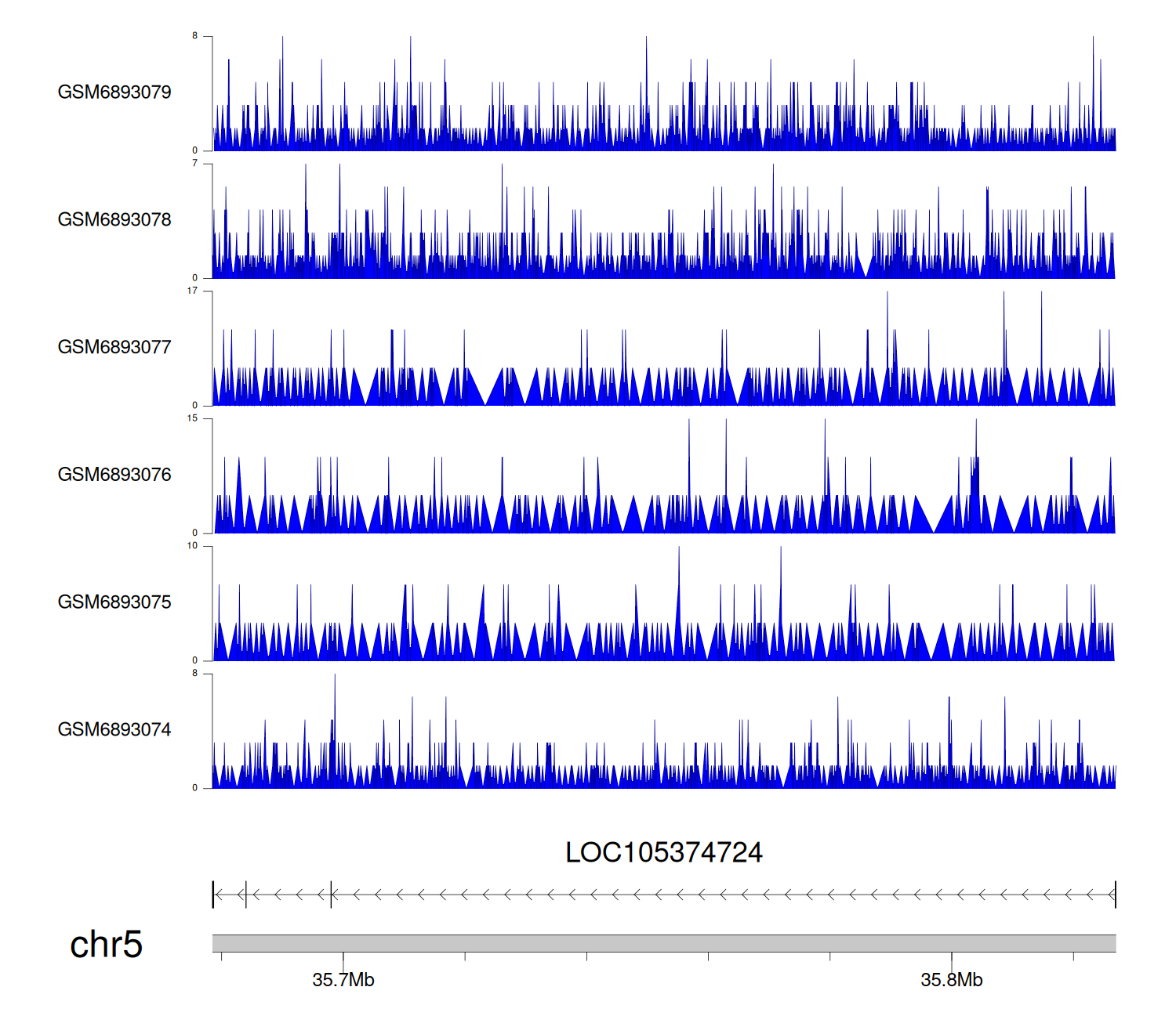 > Dataset: GSE220859 - LOC105374724 peak across samples
