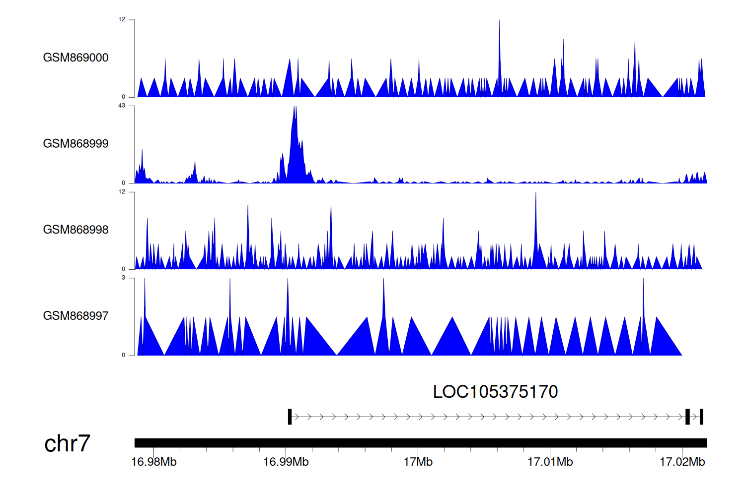 > Dataset: GSE131257 - LOC105375170 peak across samples