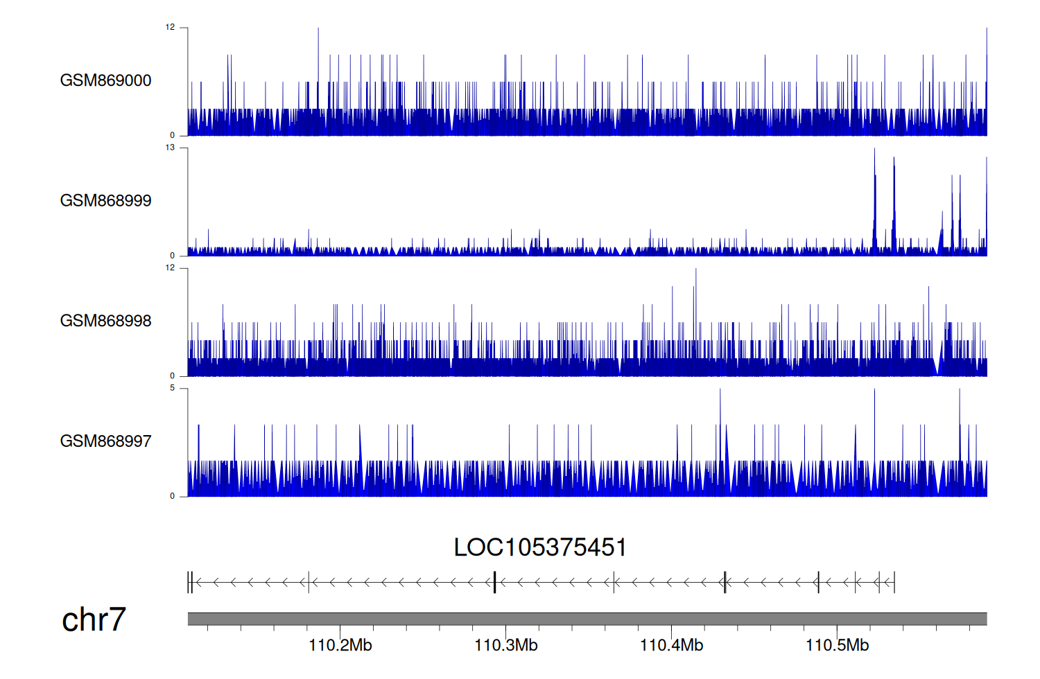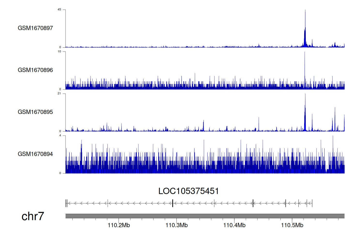 > Dataset: GSE131257 - LOC105375451 peak across samples