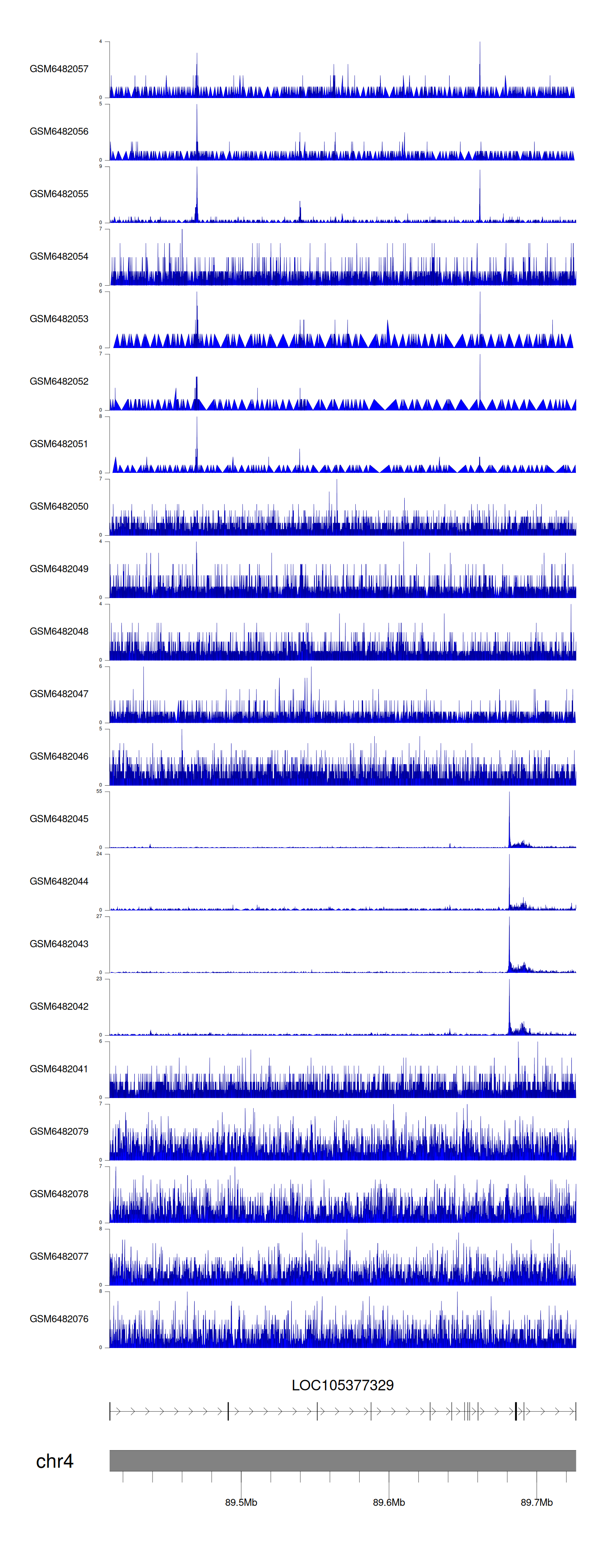 > Dataset: GSE144329 - LOC105377329 peak across samples