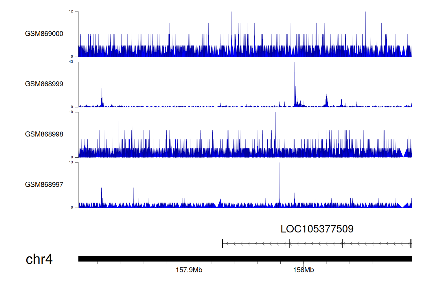 > Dataset: GSE68402 - LOC105377509 peak across samples
