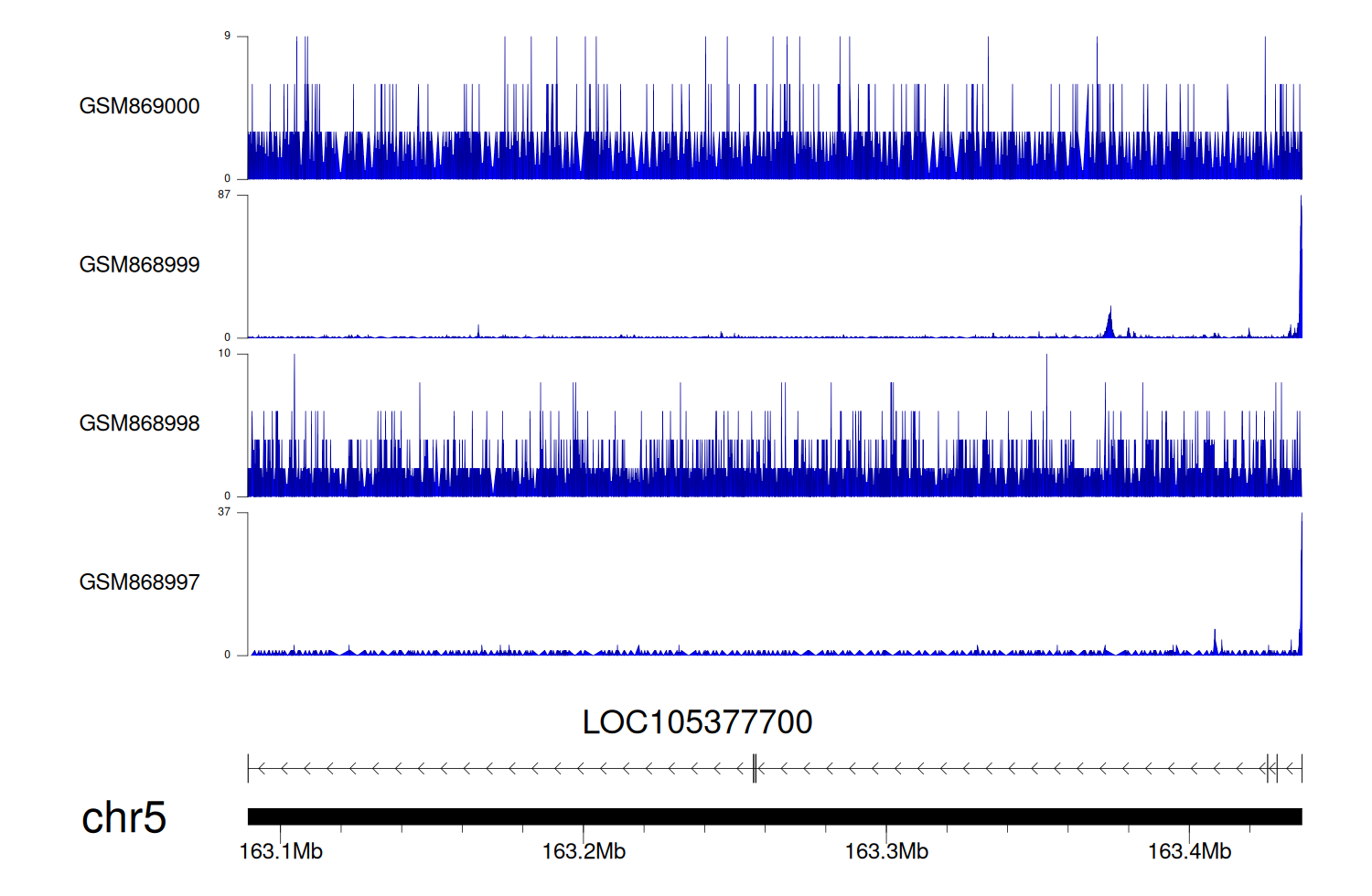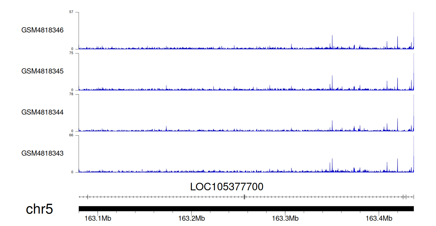 > Dataset: GSE131257 - LOC105377700 peak across samples