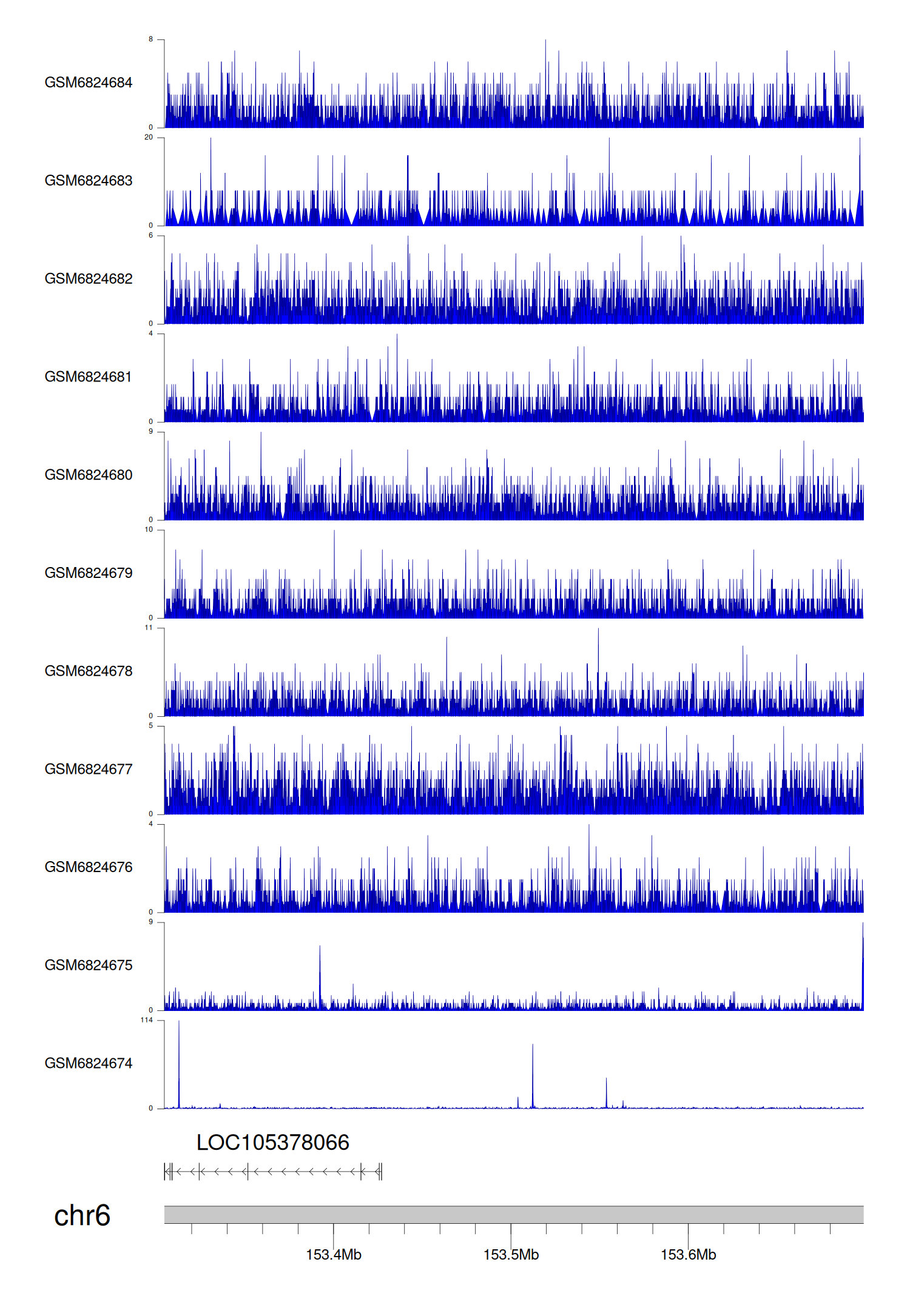 > Dataset: GSE144329 - LOC105378066 peak across samples