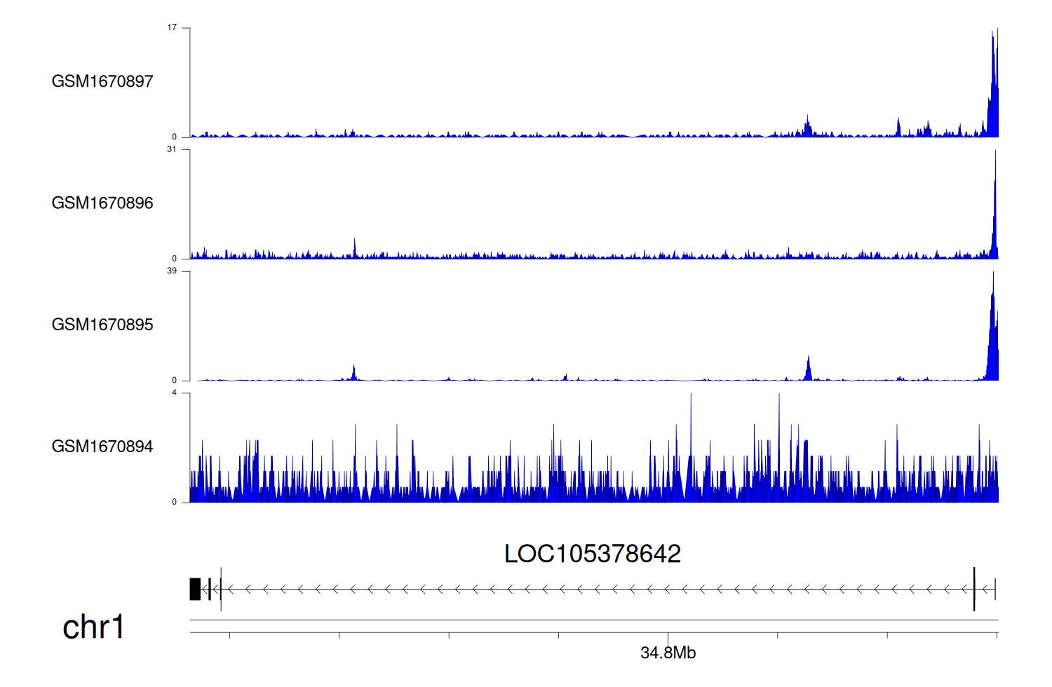 > Dataset: GSE68402 - LOC105378642 peak across samples