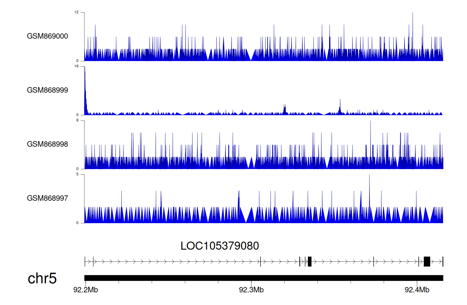 > Dataset: GSE131257 - LOC105379080 peak across samples