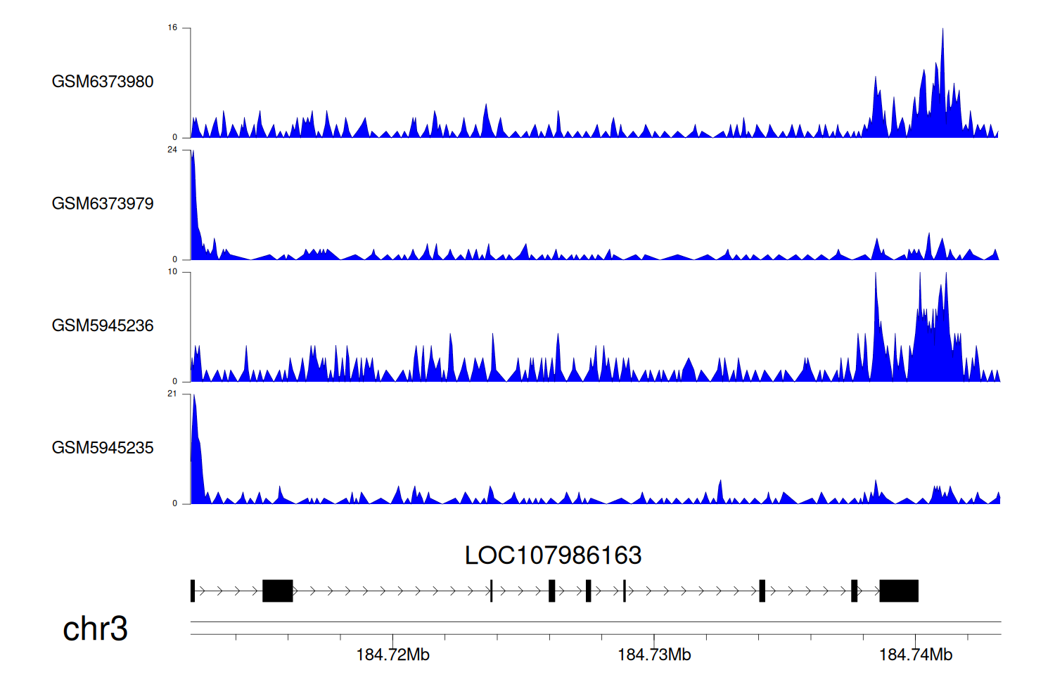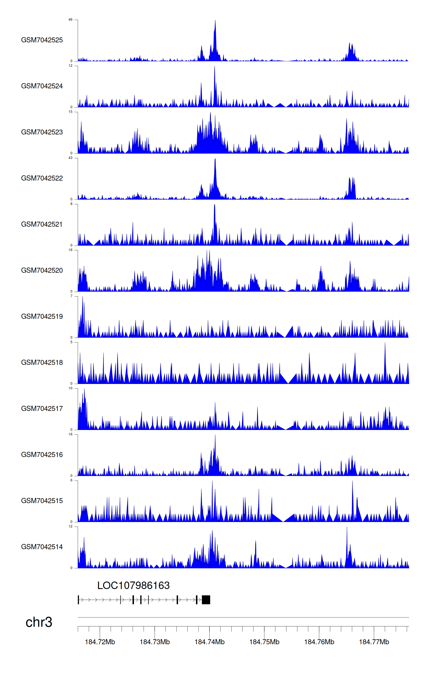 > Dataset: GSE225248 - LOC107986163 peak across samples