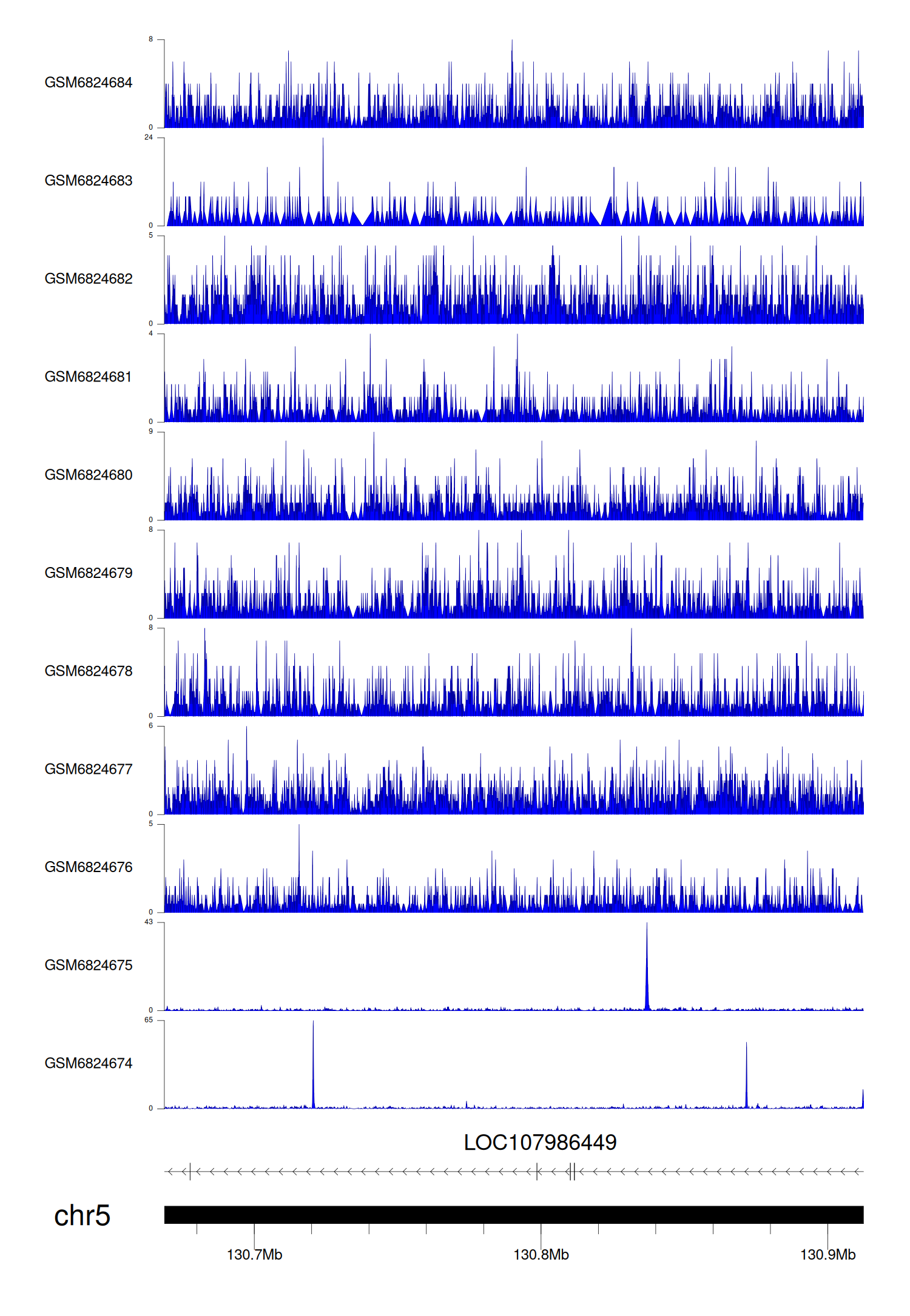 > Dataset: GSE144329 - LOC107986449 peak across samples