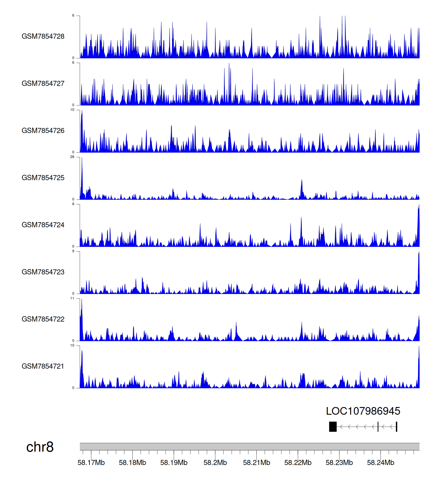 > Dataset: GSE198334 - LOC107986945 peak across samples