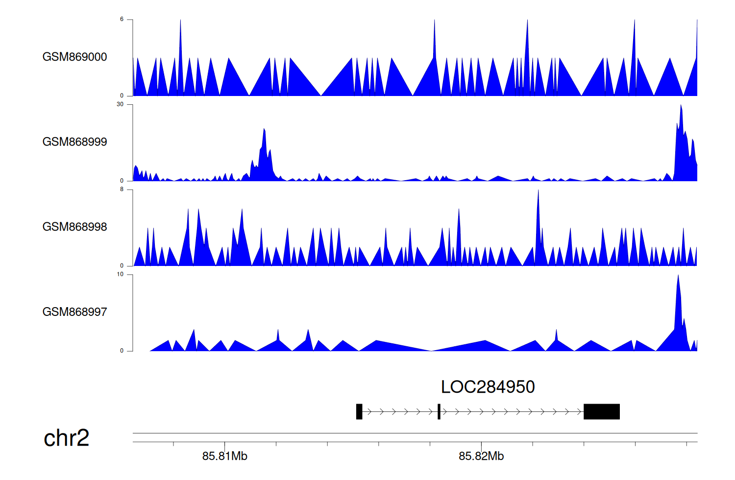 > Dataset: GSE68402 - LOC284950 peak across samples