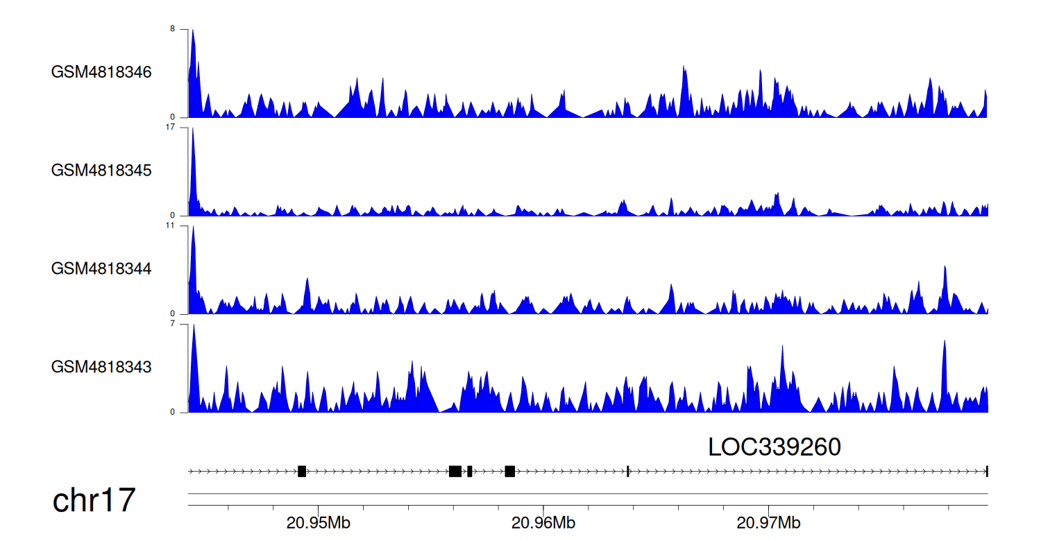 > Dataset: GSE131257 - LOC339260 peak across samples